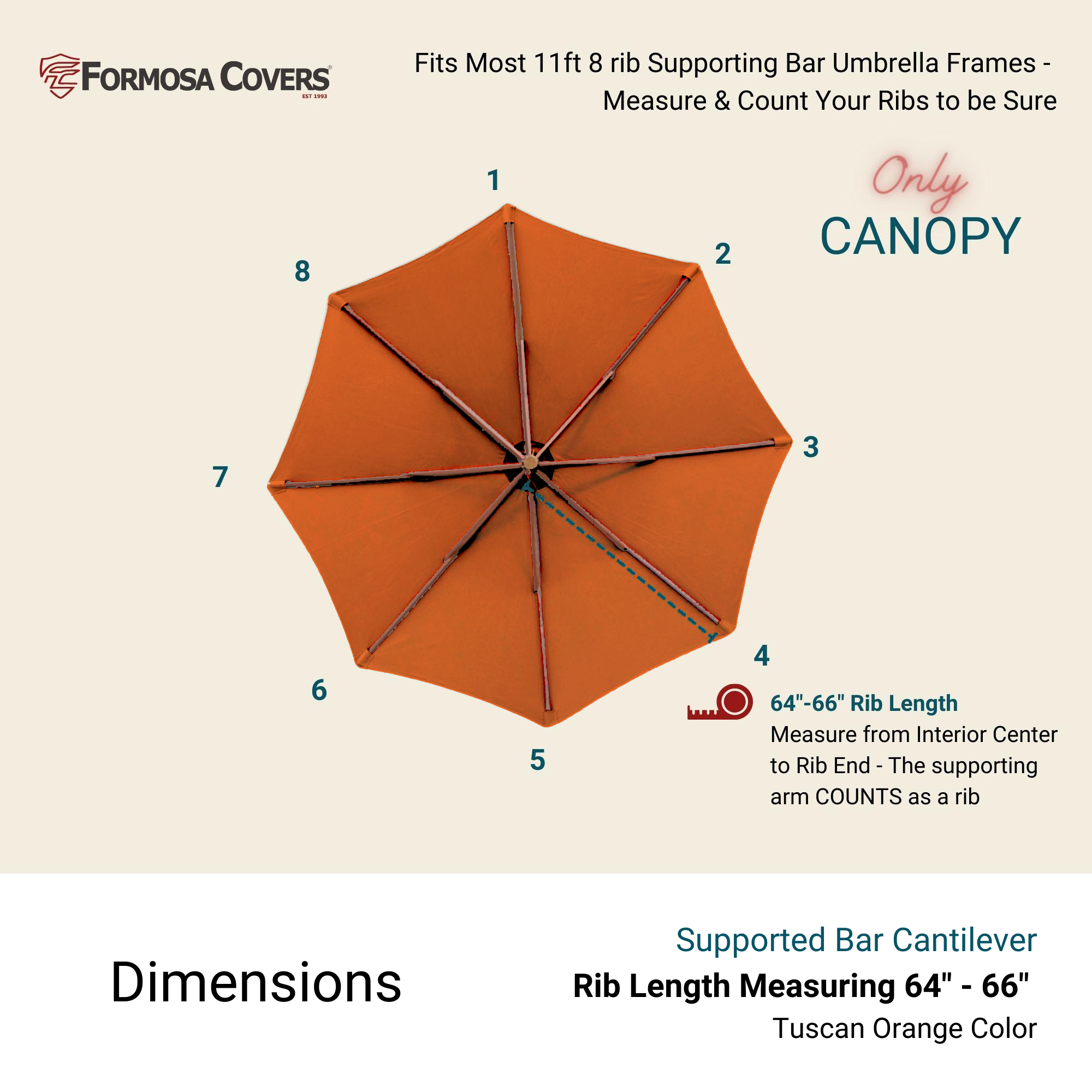 11 ft Cantilever Umbrella Replacement Canopy Supported Bar 8 Ribs Tuscan Orange