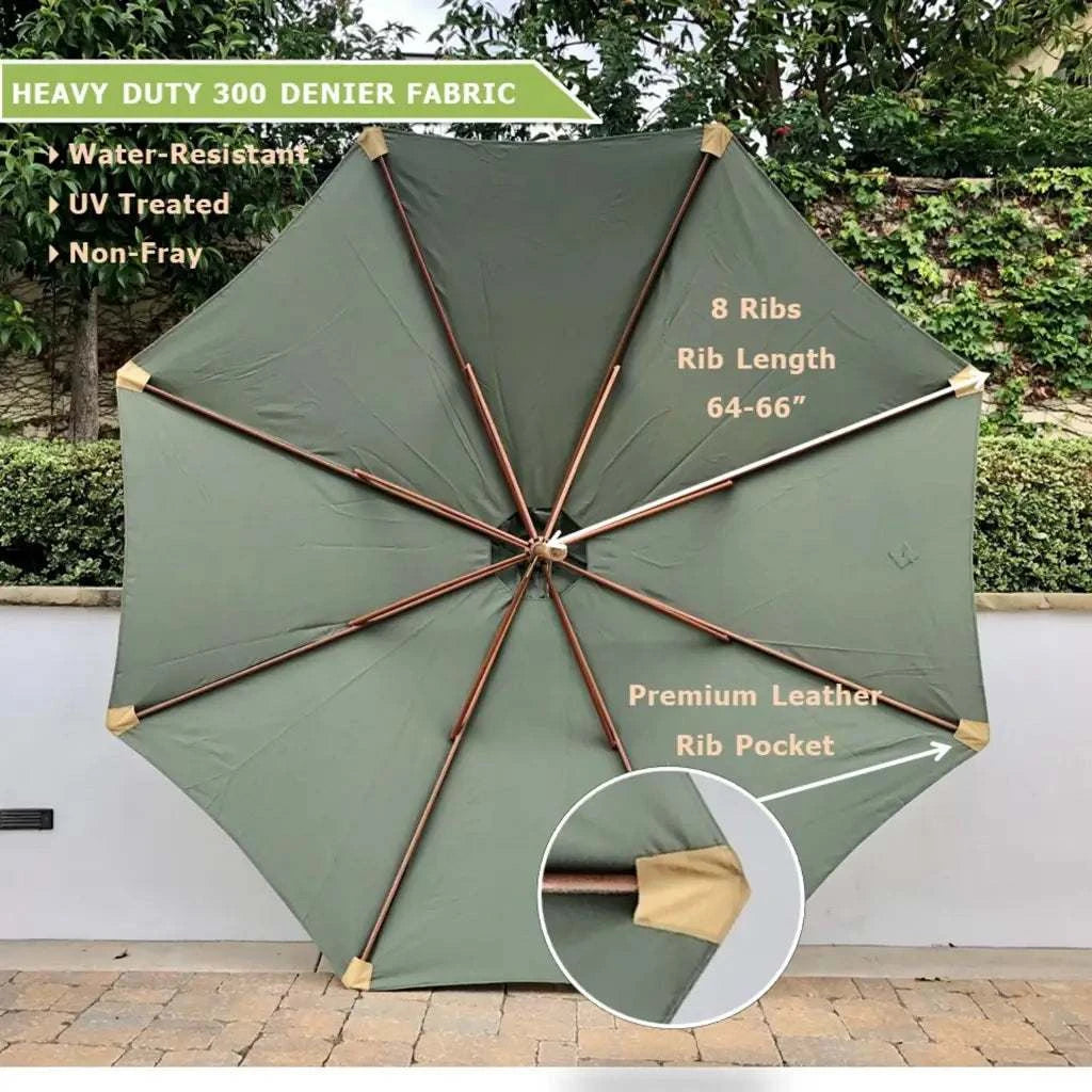 • Leather corner pockets for stronger and sturdier support of umbrella frame
