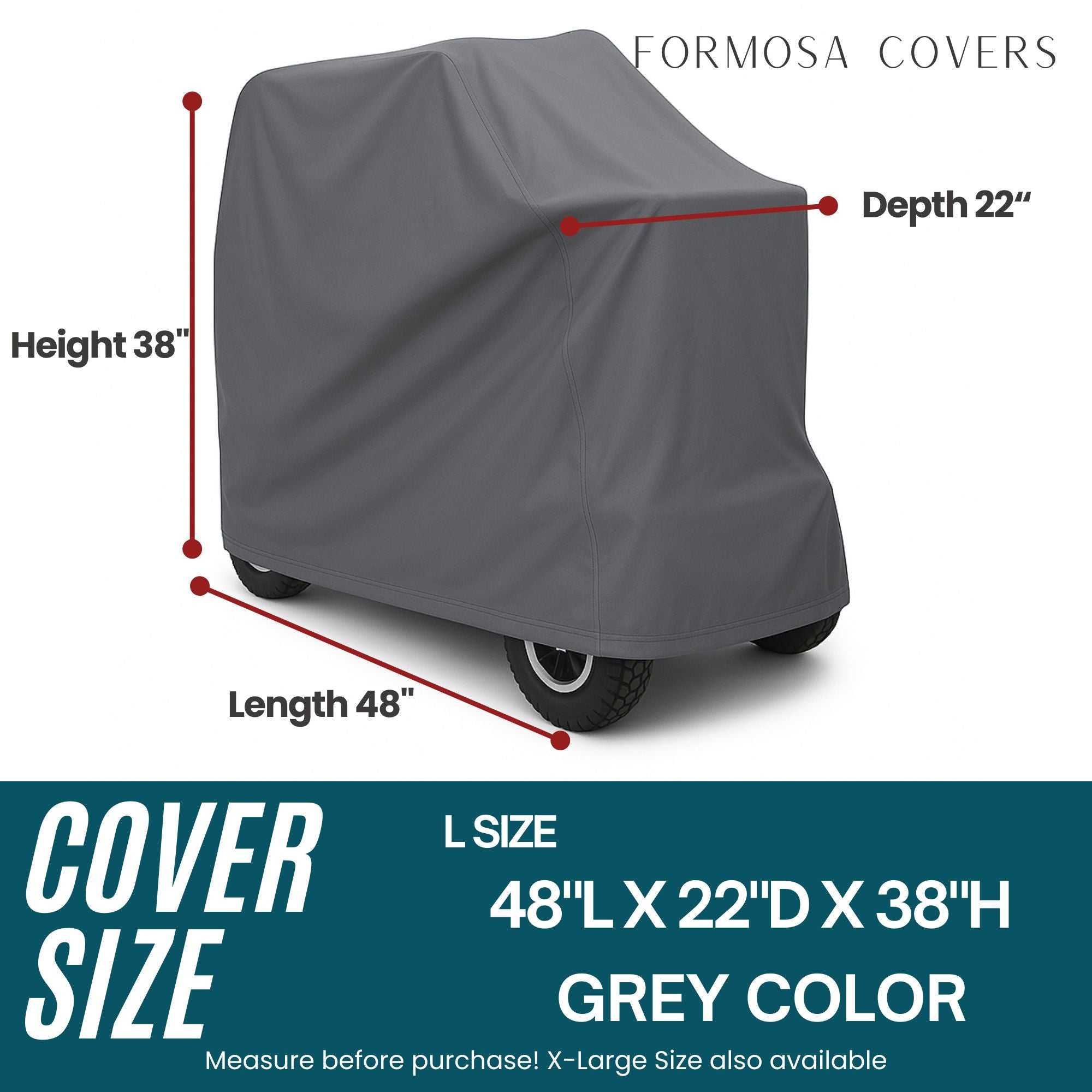 Protect your scooter year-round with the Formosa Covers Mobility Scooter Storage Cover, designed to shield your power wheelchair or scooter from the elements when not in use. Made with premium WeatherGuard fabric, this cover is breathable yet water-resistant, offering superior protection against rain, UV rays, dust, and dirt.