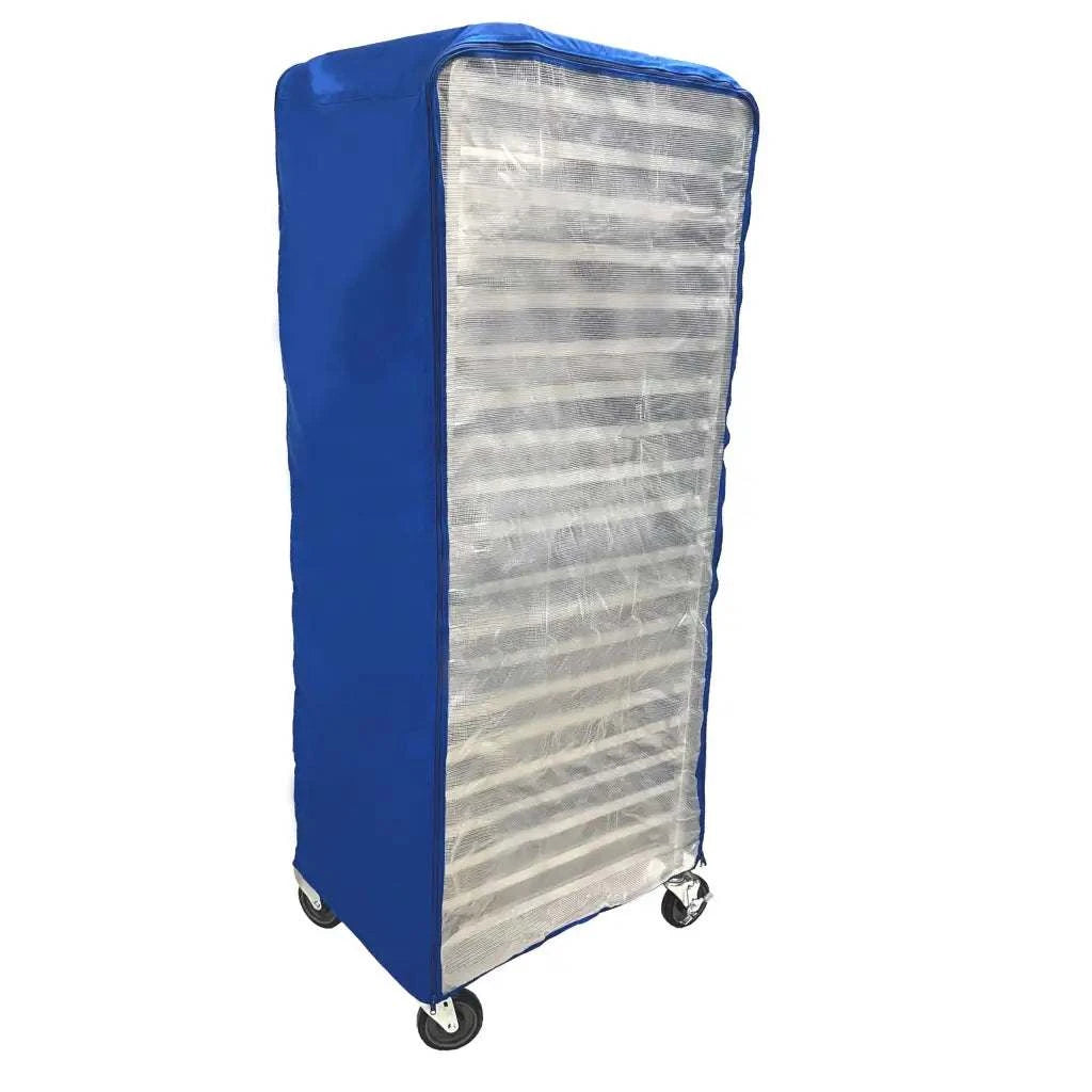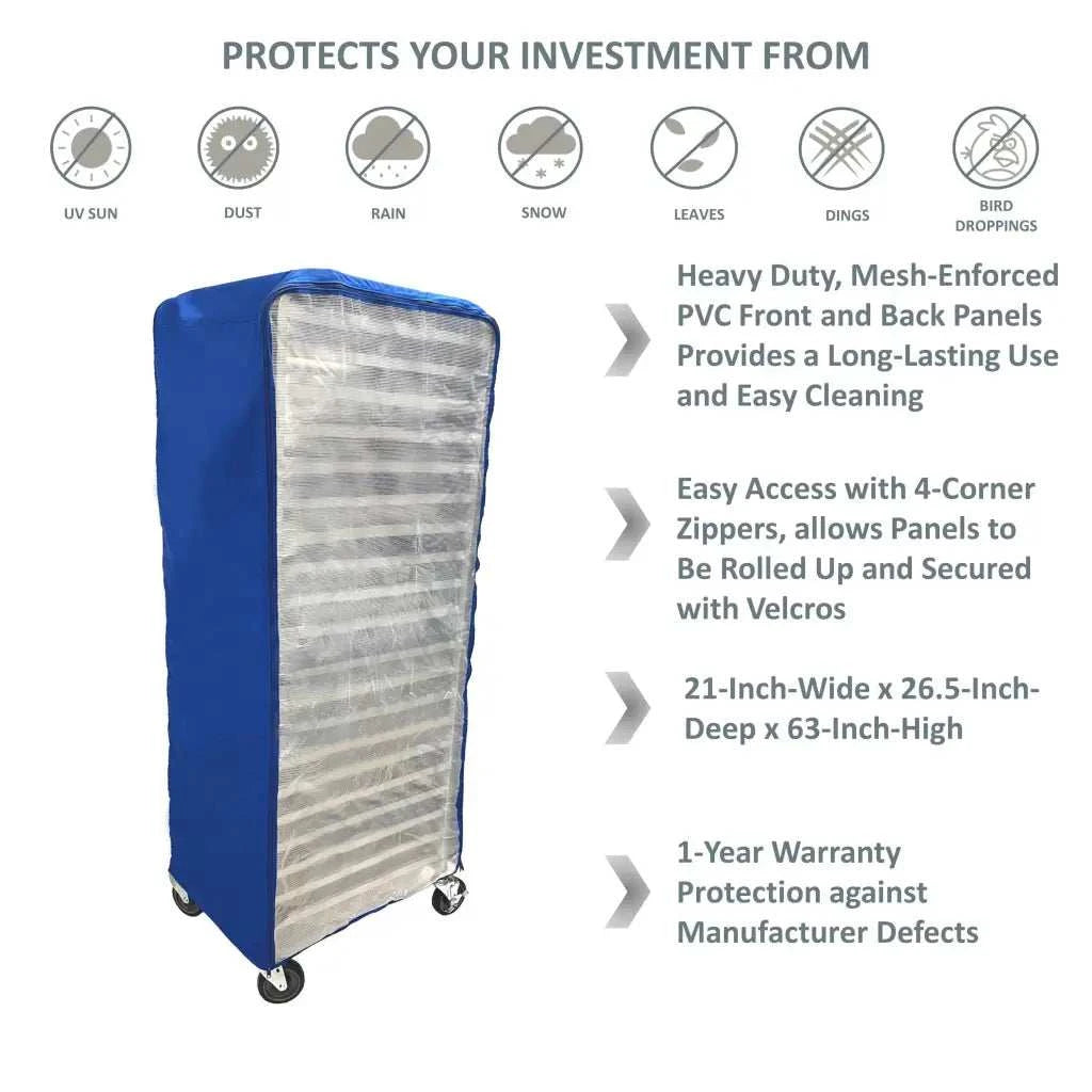 Side Loaded Bun Rack Cover, 21"W x 26.5"D x 63"H, Royal Blue with Clear PVC Panels