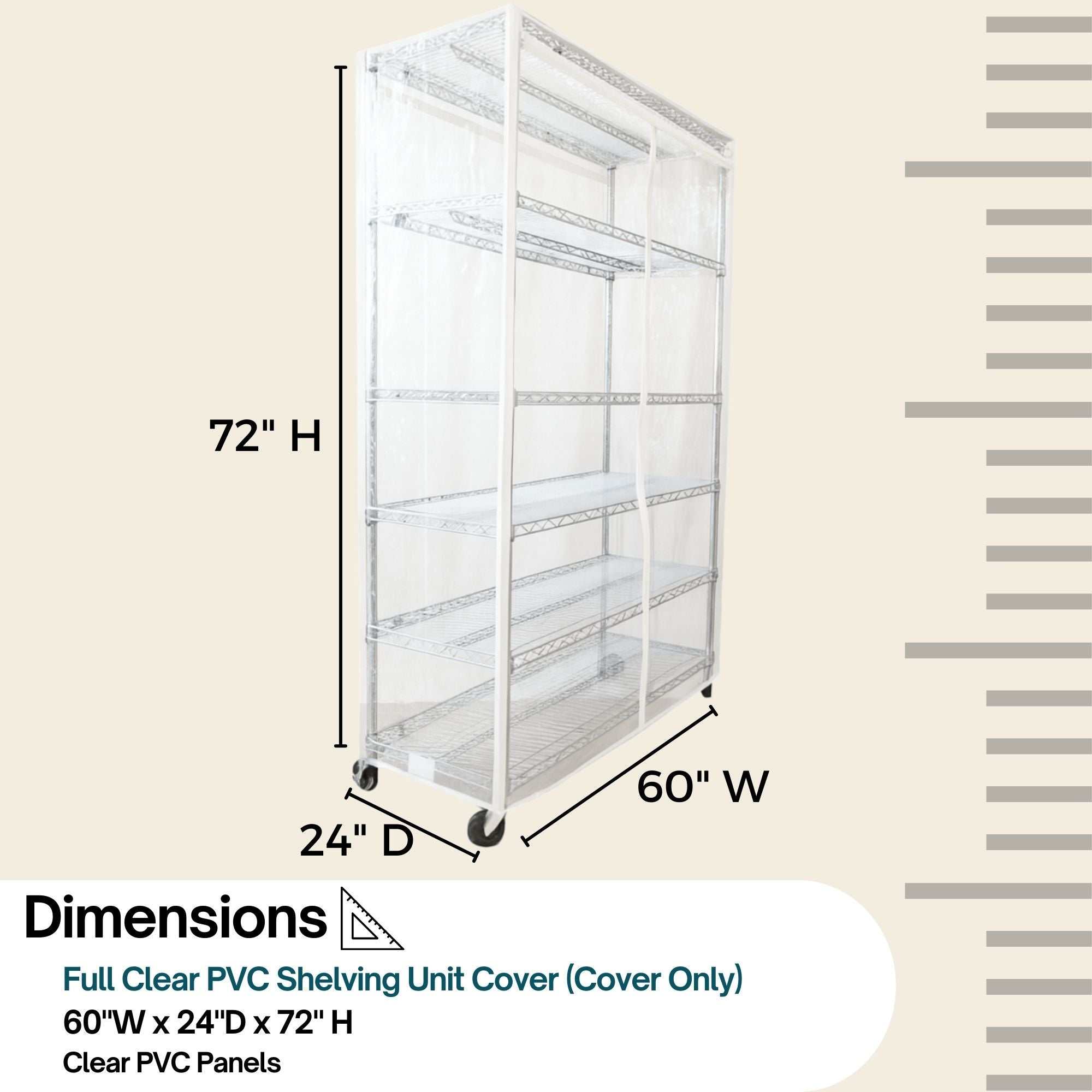 This is a cover only. Frame and shelving are not included. Designed to fit a range of standard wire shelving sizes, it is a versatile solution for anyone who needs clear visibility, reliable protection, and quick access to stored items.