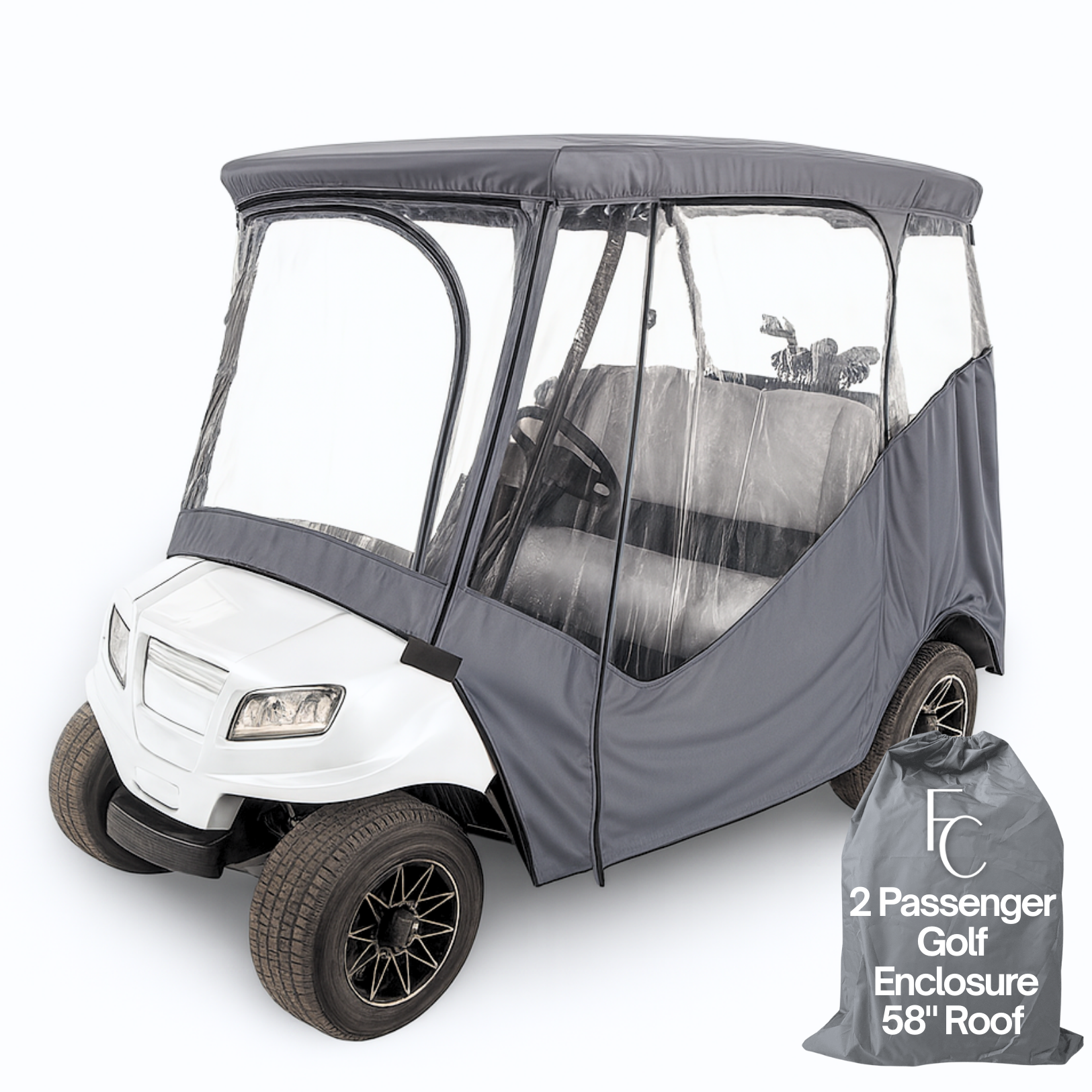 2 Passenger Driveable Golf Cart Enclosure Golf Cart Rain Cover YKK Door Zippers - Grey