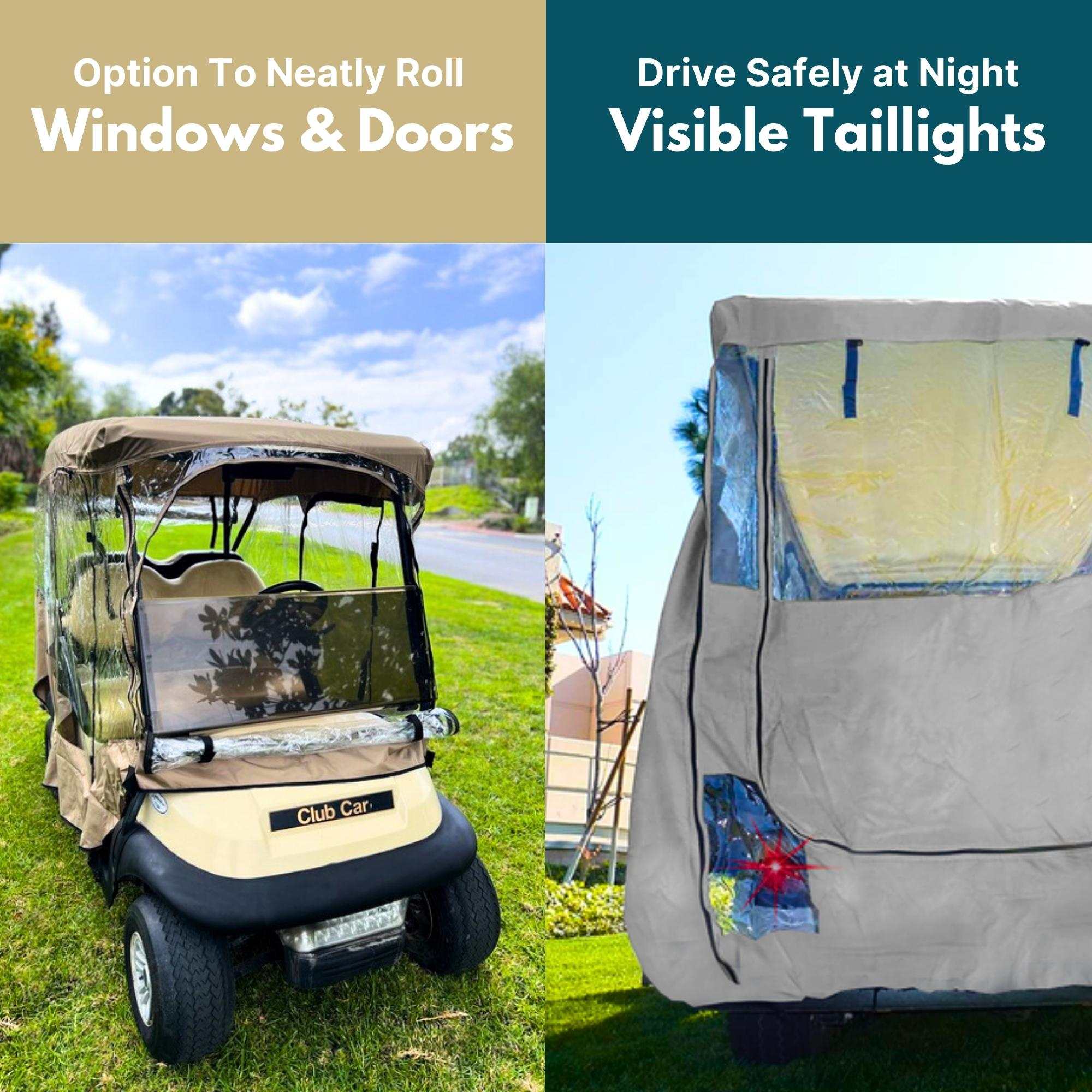Golf Cart Drivable Rain Cover for 4-Seater with 2-Seater Roof Up To 58":