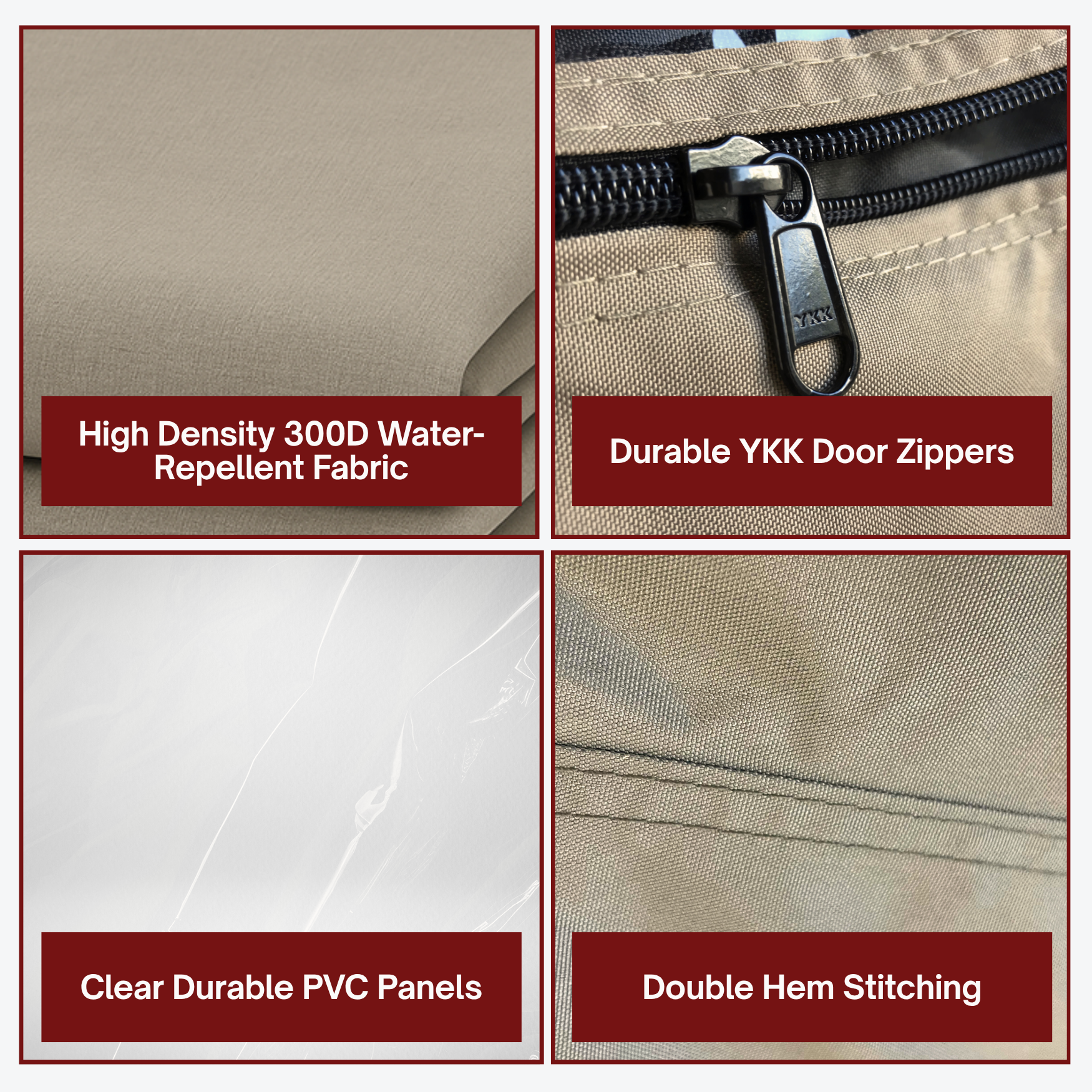 • NEW STRONGER YKK ZIPPER: We're a feedback driven company and heard you! As of 2019 we have updated our door zipper to YKK zipper which will make it much easier to zip yourself in and out of the enclosure and will be better suited for daily use. Commercial grade window zippers you can un-zip and roll up front and rear windows.