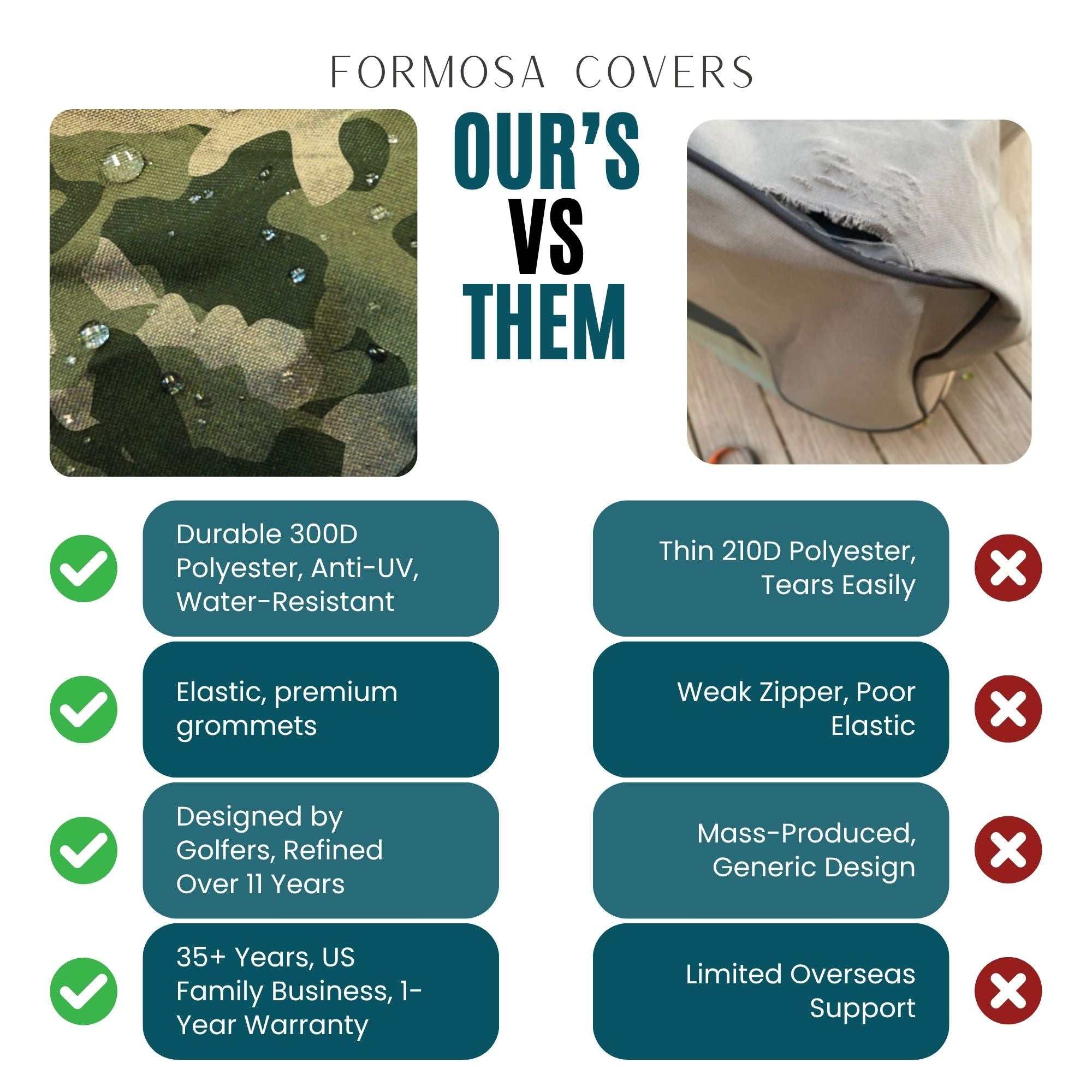 • Generous Sizing: Measures 100" L x 47"/36" W x 48" H — roomy enough for most standard 2-seater roofless carts.