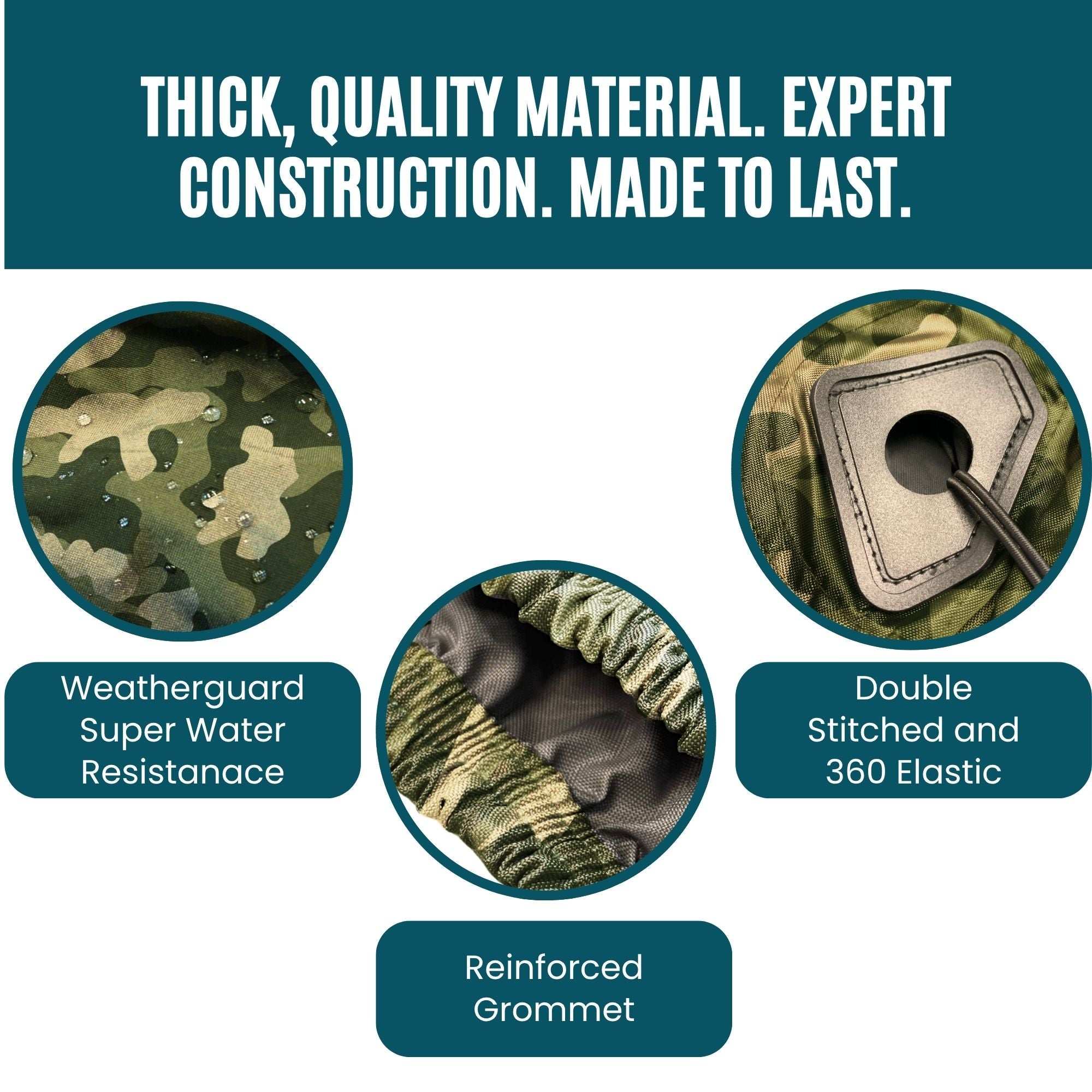 • Tough, Weather-Resistant Material: Made from heavy-duty, anti-UV, water-repellent polyester fabric that protects against sun, rain, and snow. Camouflage version color!