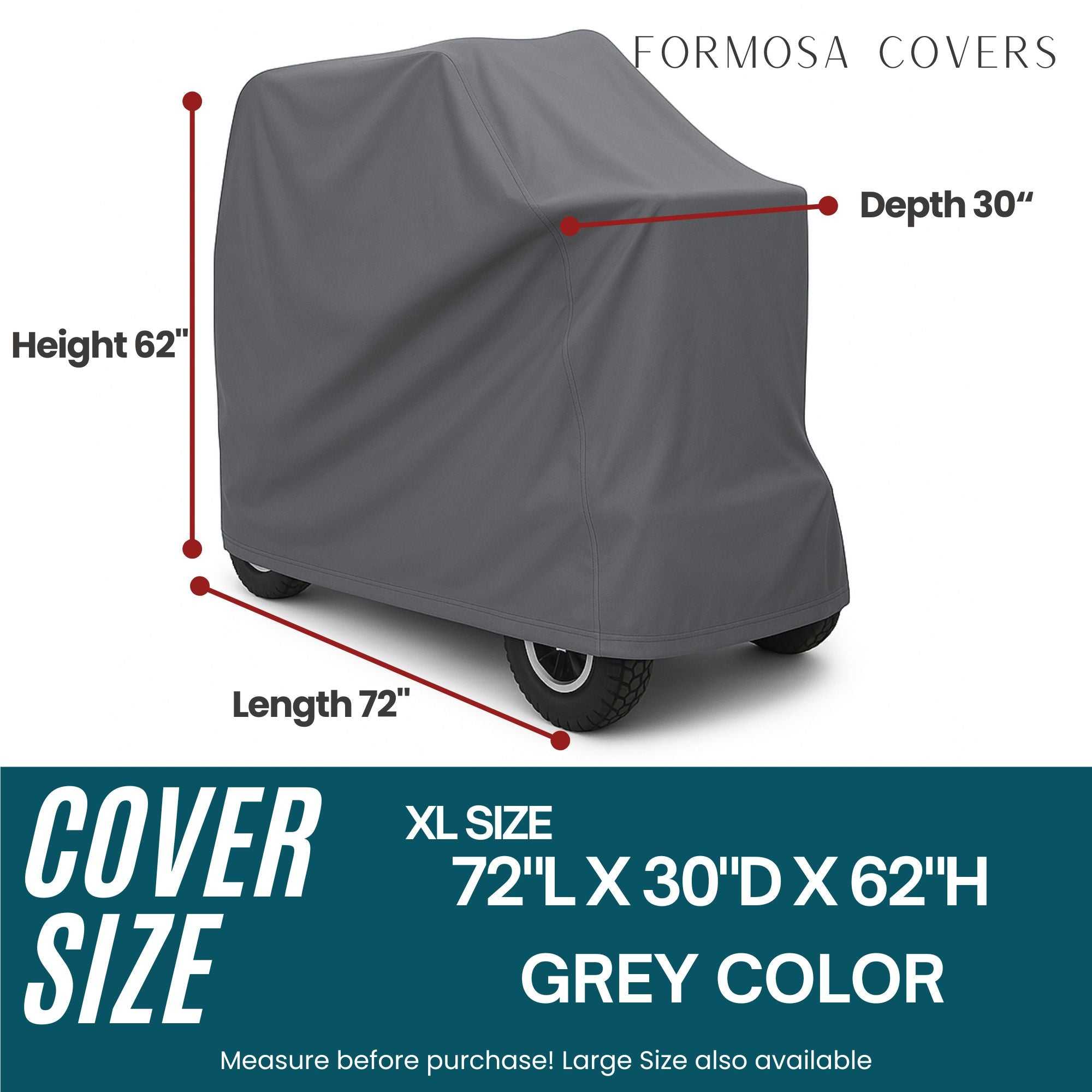 Extra Large Size: 72"L x 30"D x 62"H, perfect for oversized scooters and power wheelchairs.