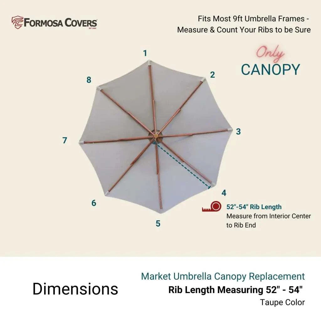 • Fits 9ft 8 rib umbrella frame with rib length 52"-54"