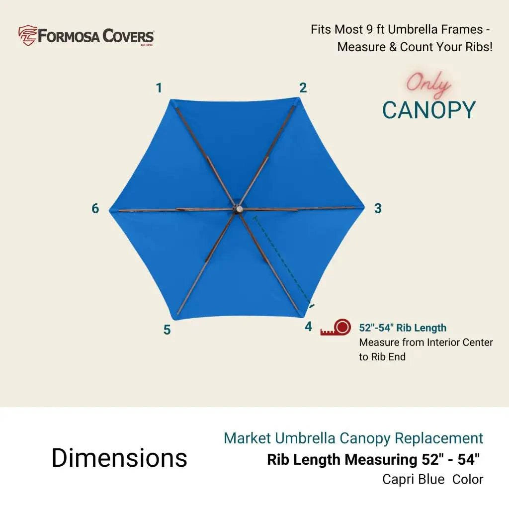 • Fits 9ft 6 rib umbrella frame with rib length 52"-54"