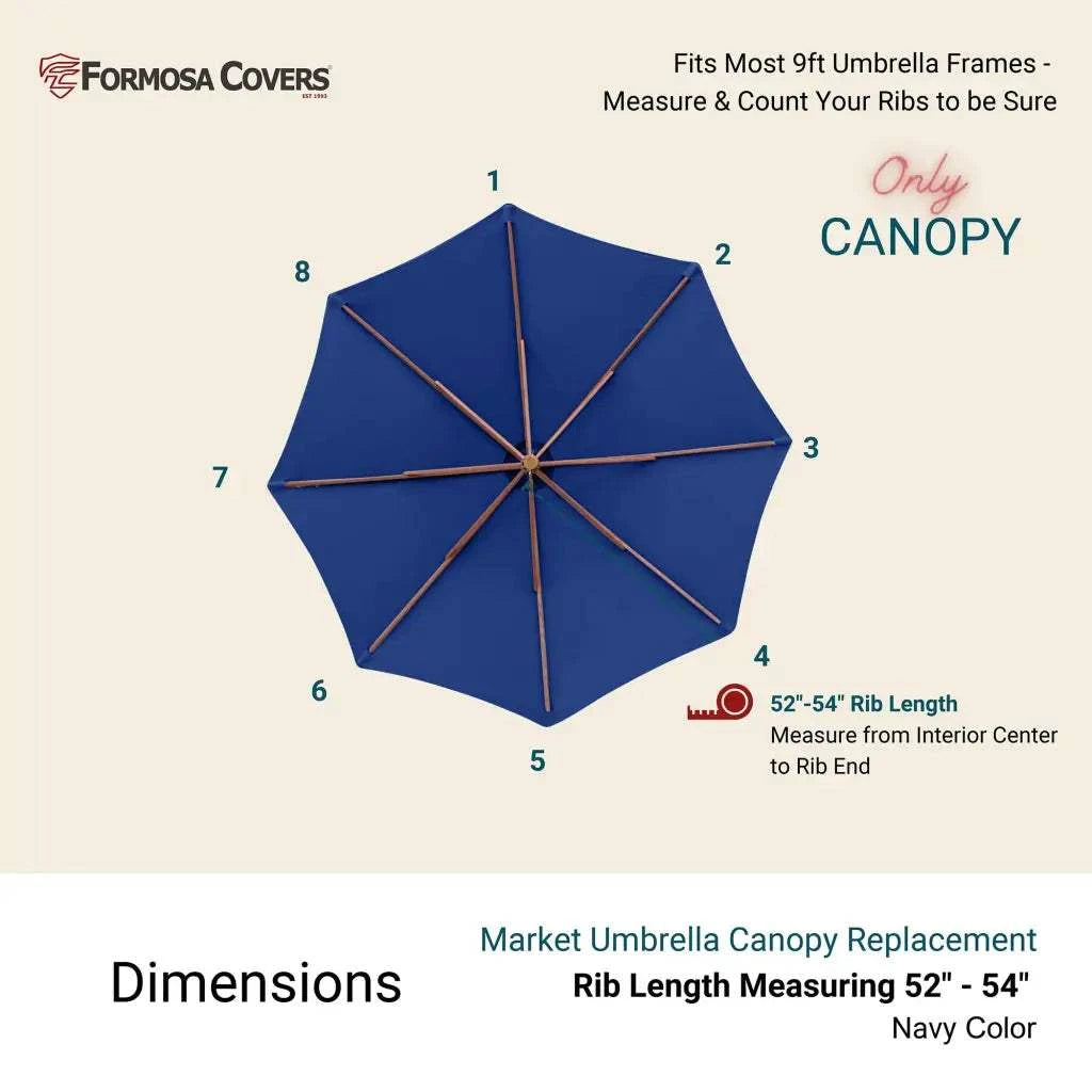 • Fits 9ft 8 rib umbrella frame with rib length 52"-54"