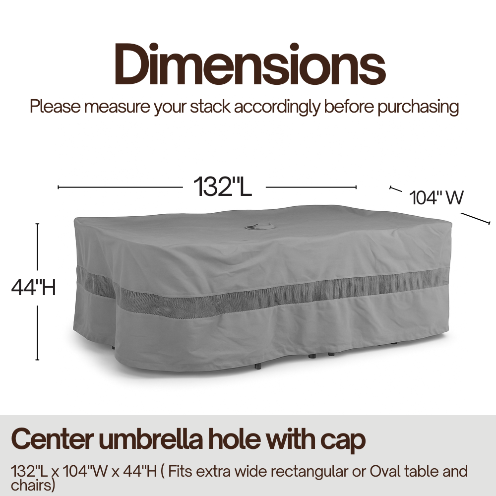 Patio Set Cover For Rectangular or Oval Table 132"L x 104"W x 44"H Extra Wide Reserve Grey