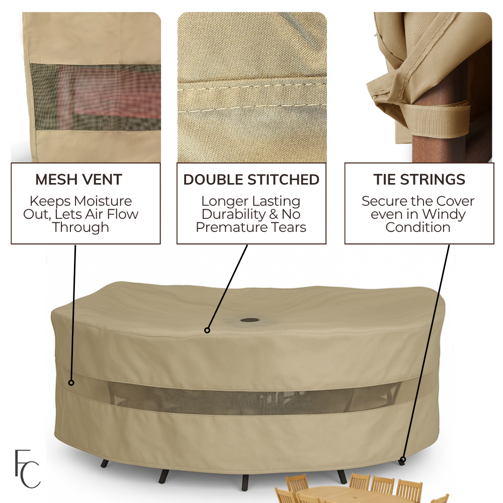 • PROTECTION YOU CAN COUNT ON: Keep your rectangular or oval table and chairs clean and dry all year round with our backyard accessories. Made to cover your outdoor dining set so you don't have to dust off your outdoor patio furniture each time you want to use it