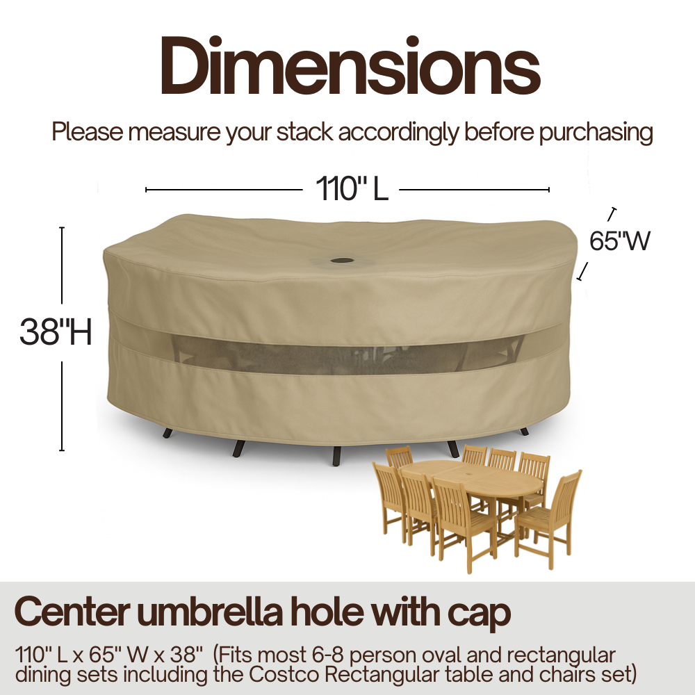 Patio Set Cover For Oval or Rectangular Table 110"L x 65"W x 38"H Classic Taupe