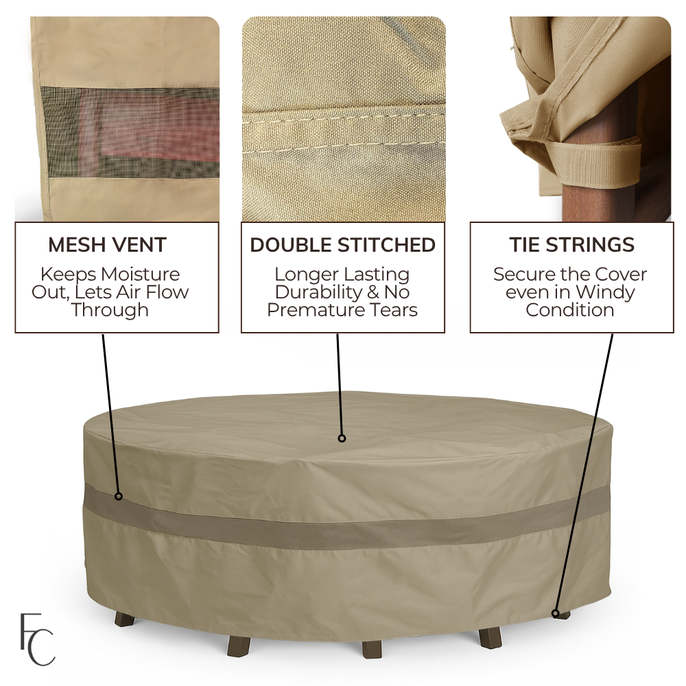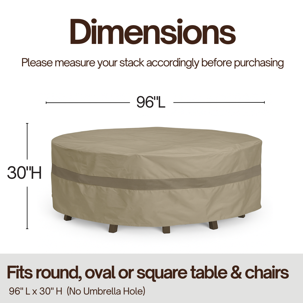 Patio Set Cover For Round or Square Table & Chairs 96"Dia./L x 30"H Classic Taupe
