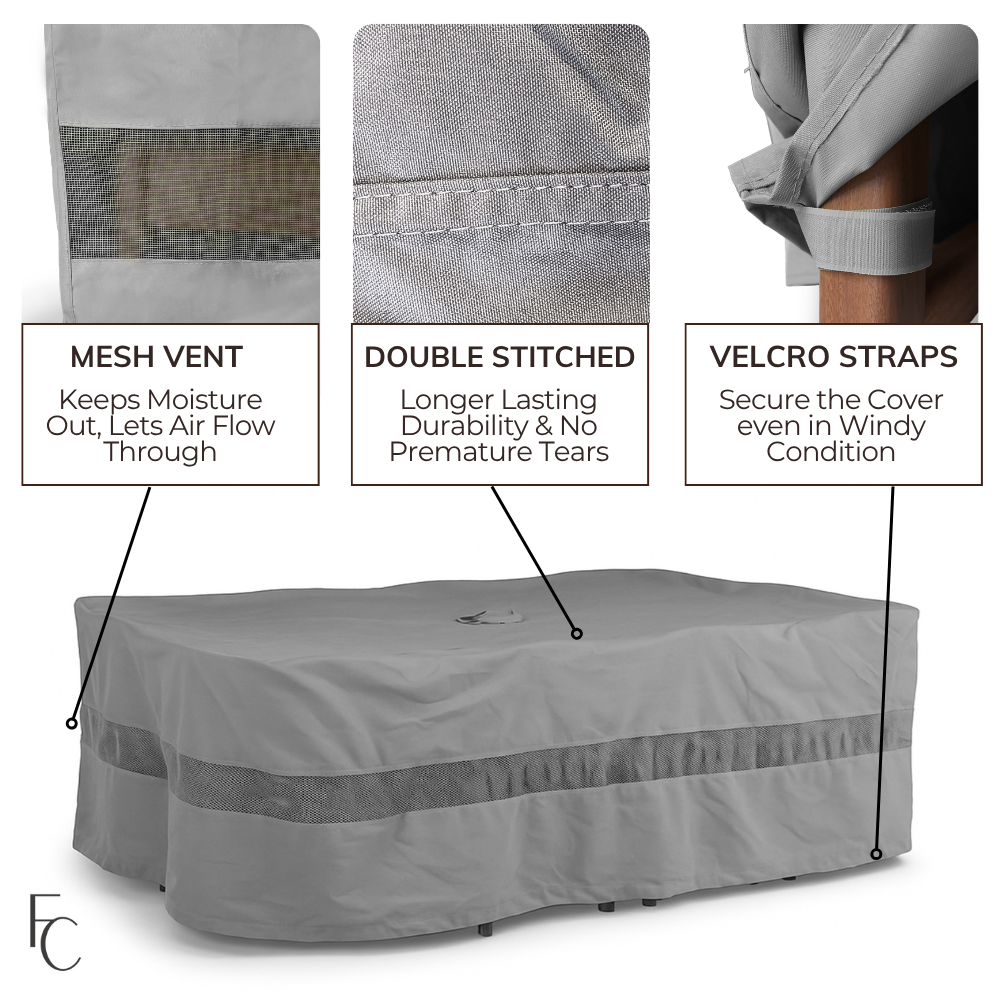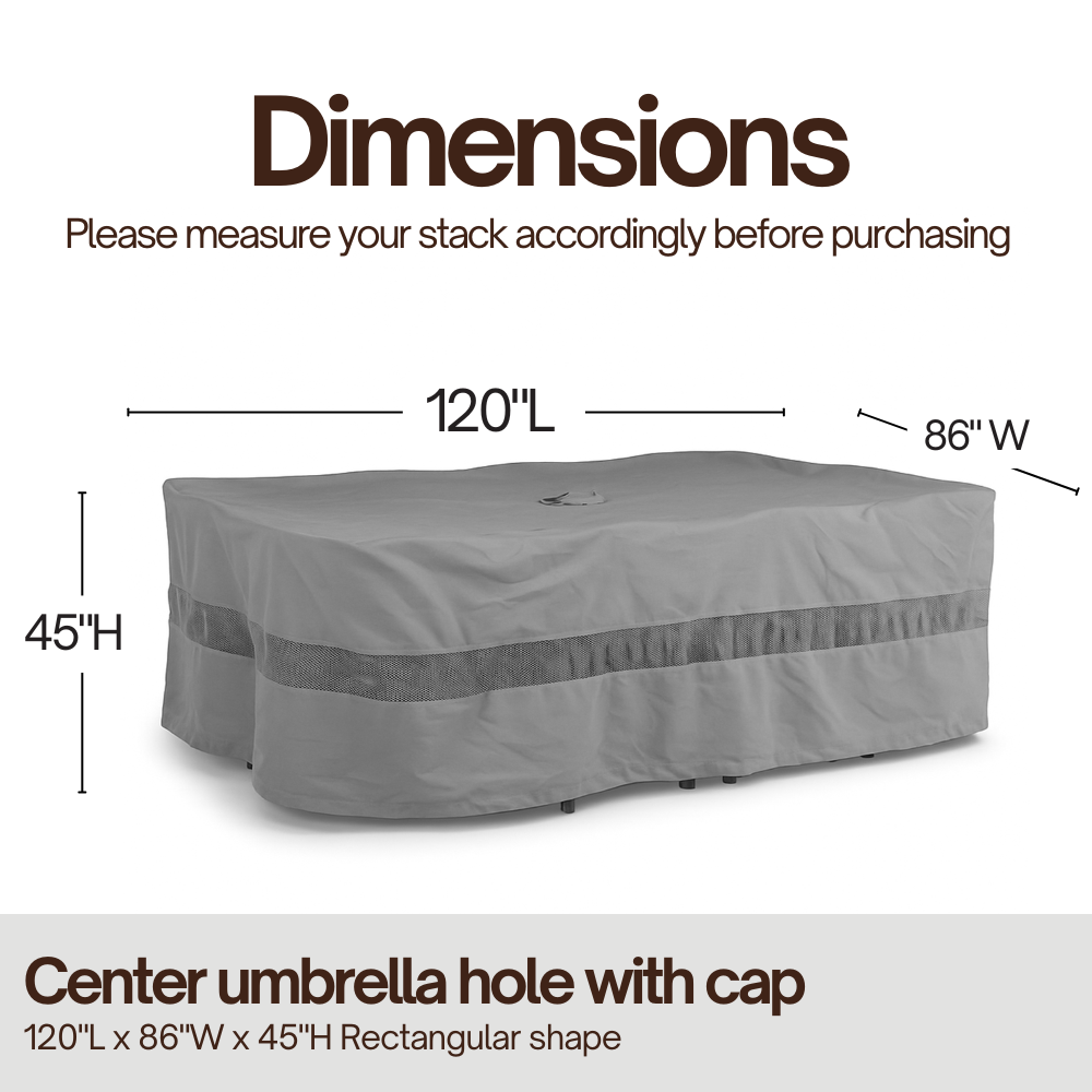 Patio Set Cover For Rectangular or Oval Table 120"L x 86"W x 45"H Reserve Grey
