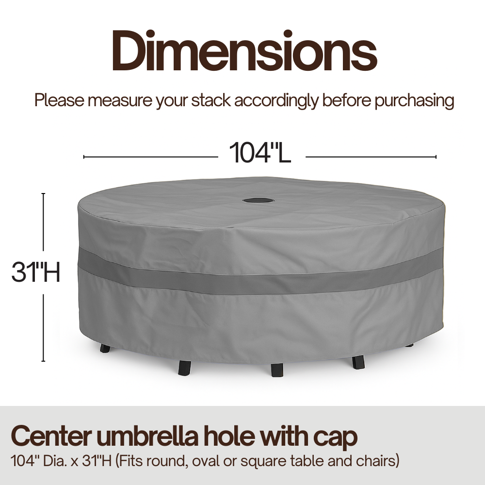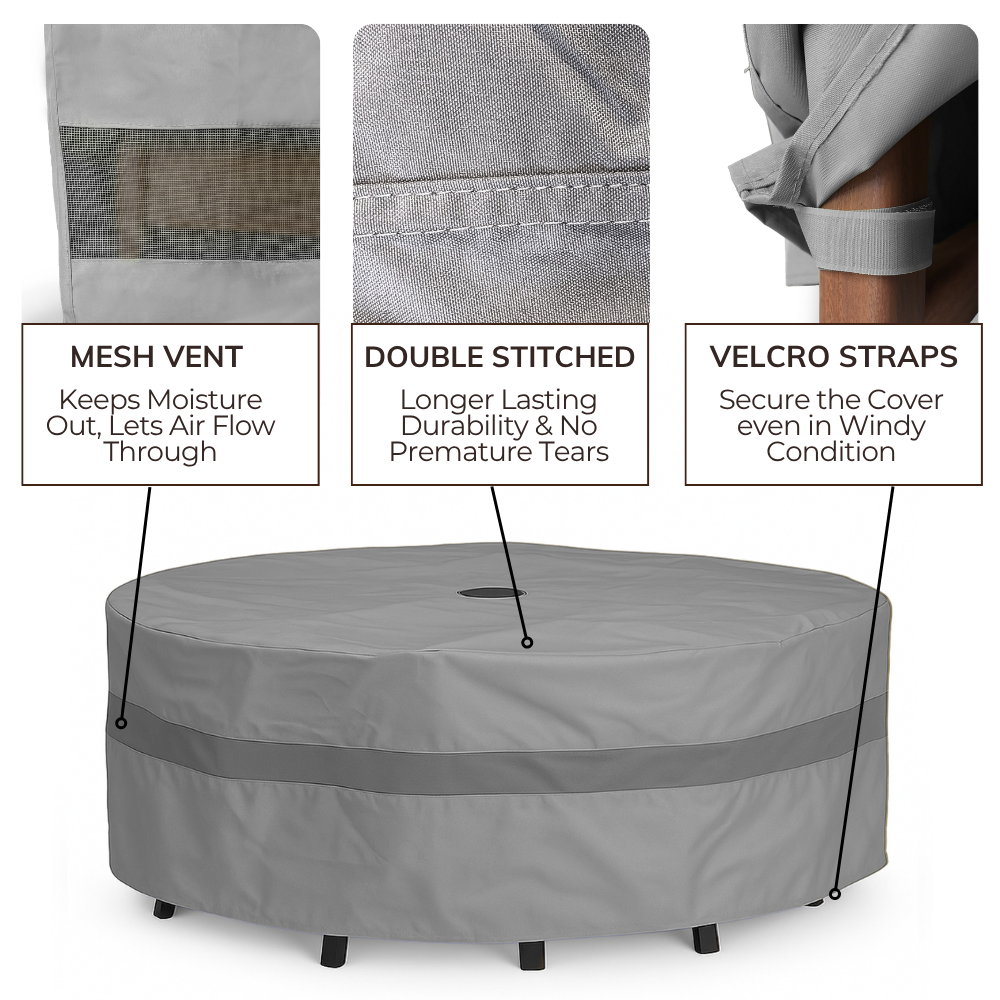 Patio Conversation Set Cover For Round Table 104"Dia. X 31"H with Umbrella Hole Reserve Grey