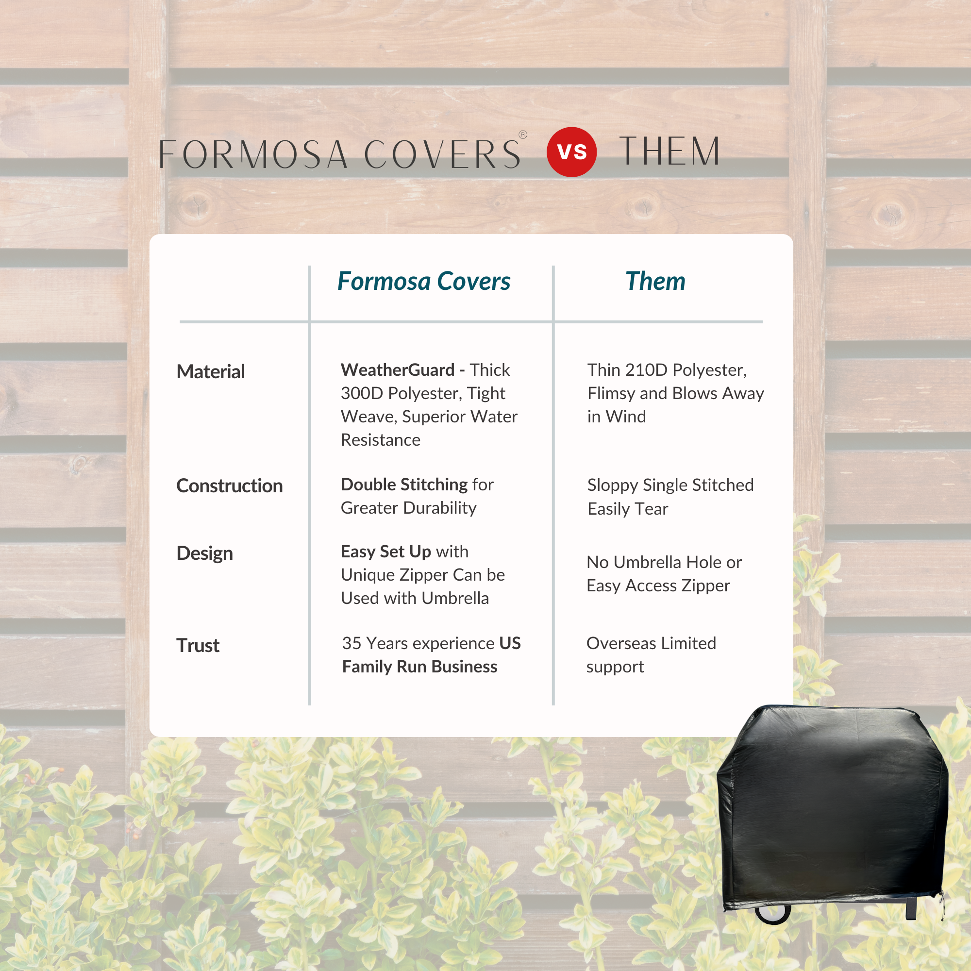 • CAUTION: Let your BBQ or grill cool down before covering.
