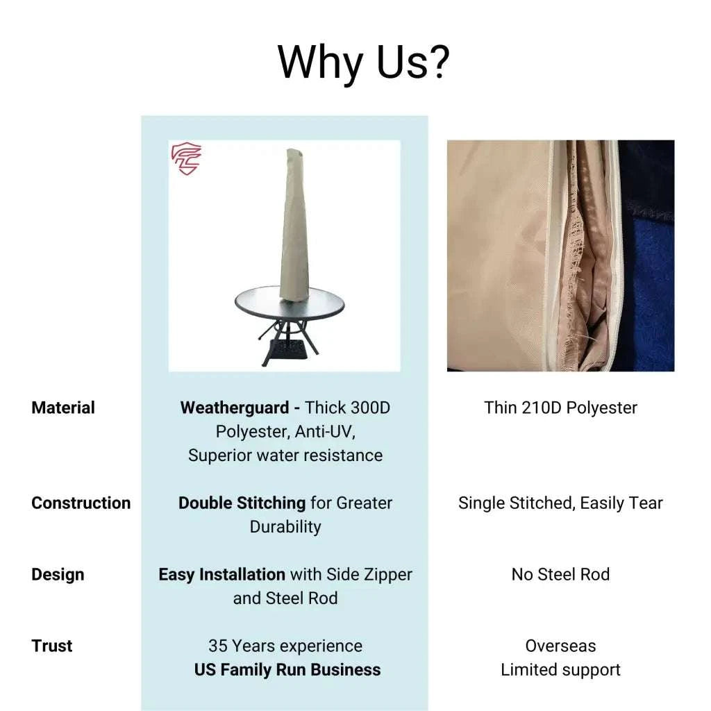• Weatherproof and Water-Resistant - keeps your valued patio star dry with not one but Two (PU- Polyurethane ) coatings