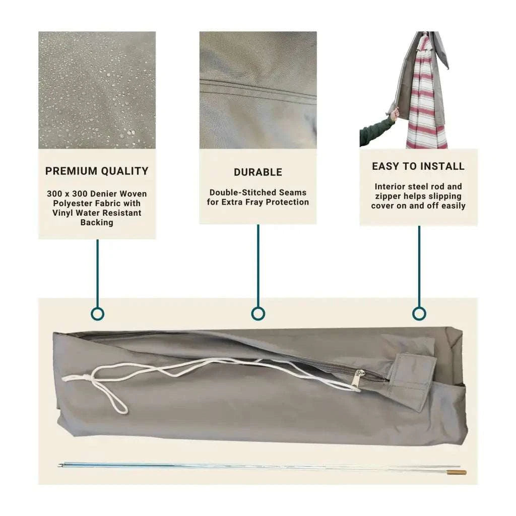 Keep your umbrella investment safe from the elements when you are not using it. An umbrella cover will keep your Umbrella Canopy safe from the harmful effects of the Sun, Unwanted Debris, Wind, and Rain. Because we have been in the outdoor furniture business for over 25 years we can stand strongly behind the Quality and Value you will get from Formosa Covers products. We still recommend storing your umbrella indoors over long-period of non-use.