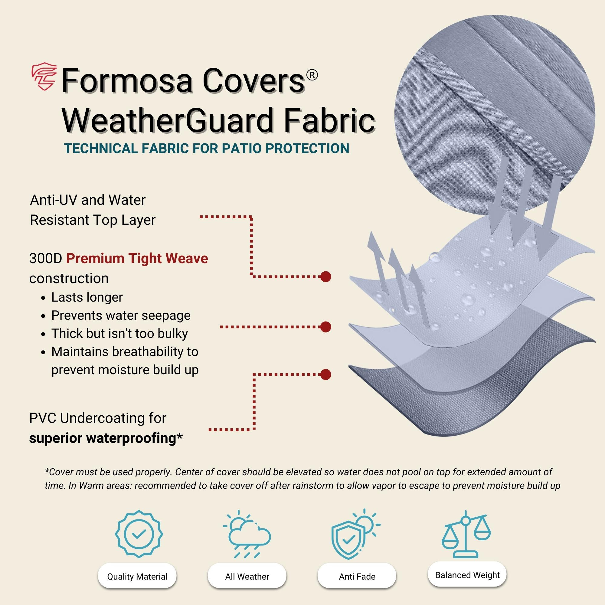 • Air Vents reduce condensation and mildew buildup while Velcro straps fasten to furniture legs to keep it secure during windy conditions