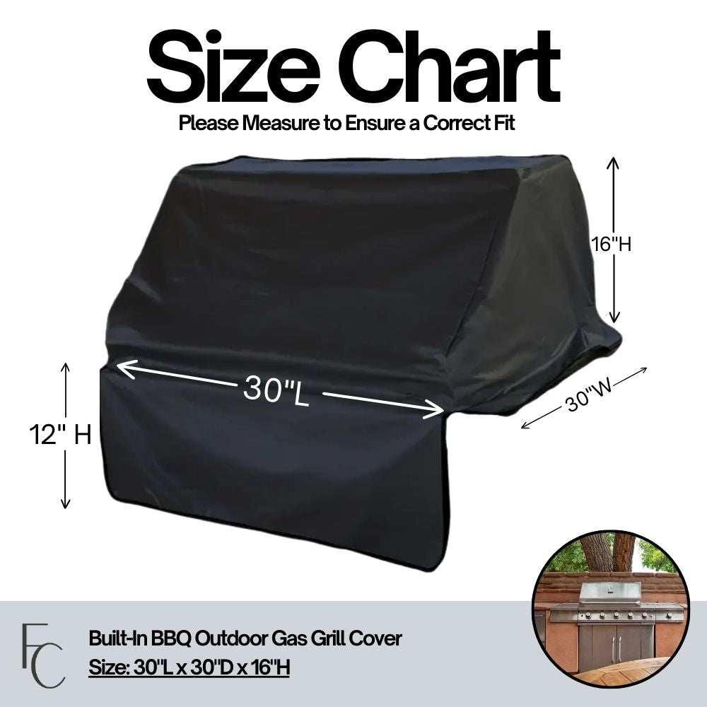 Built-In BBQ Outdoor Gas Grill Cover 30"L x 30"D x 16"H Vinyl Black