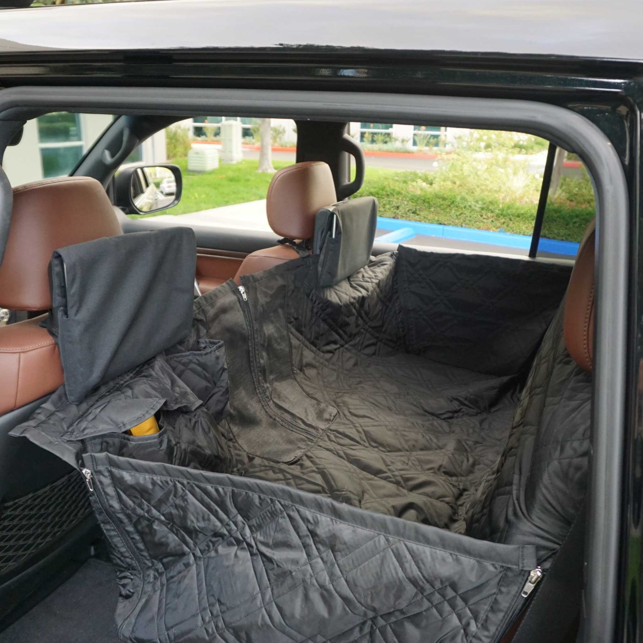 • EXCELLENT SIZE - Excellent size of 54" W x 58" L will perfectly protect your car from scratches or mud. Now you can enjoy family excursions without damaging your car! Our product covers the entire back seat, for ultimate protection and hassle-free rides