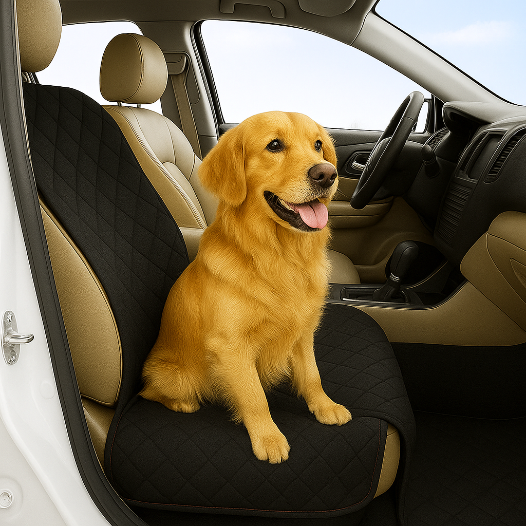 This water-repellent, quilted pet seat protector is designed for the front or rear single seats of most cars, trucks, and SUVs. It’s made from thick, padded woven polyester with a durable 75D backing — giving it a premium look and feel while shielding against scratches, dirt, shedding, and pet accidents. Ideal for daily errands, road trips, or trips to the vet, this dog car seat cover stays securely in place with adjustable buckle straps that attach around the headrest and seat base.