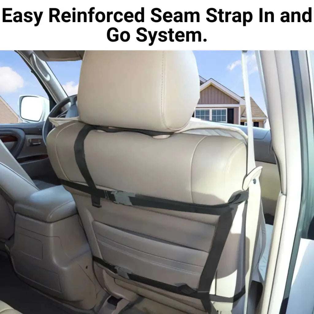 • Adjustable Straps with buckles to secure over head rests, top strap to keep the top cover in place and addition bottom strap to hold the cover in position