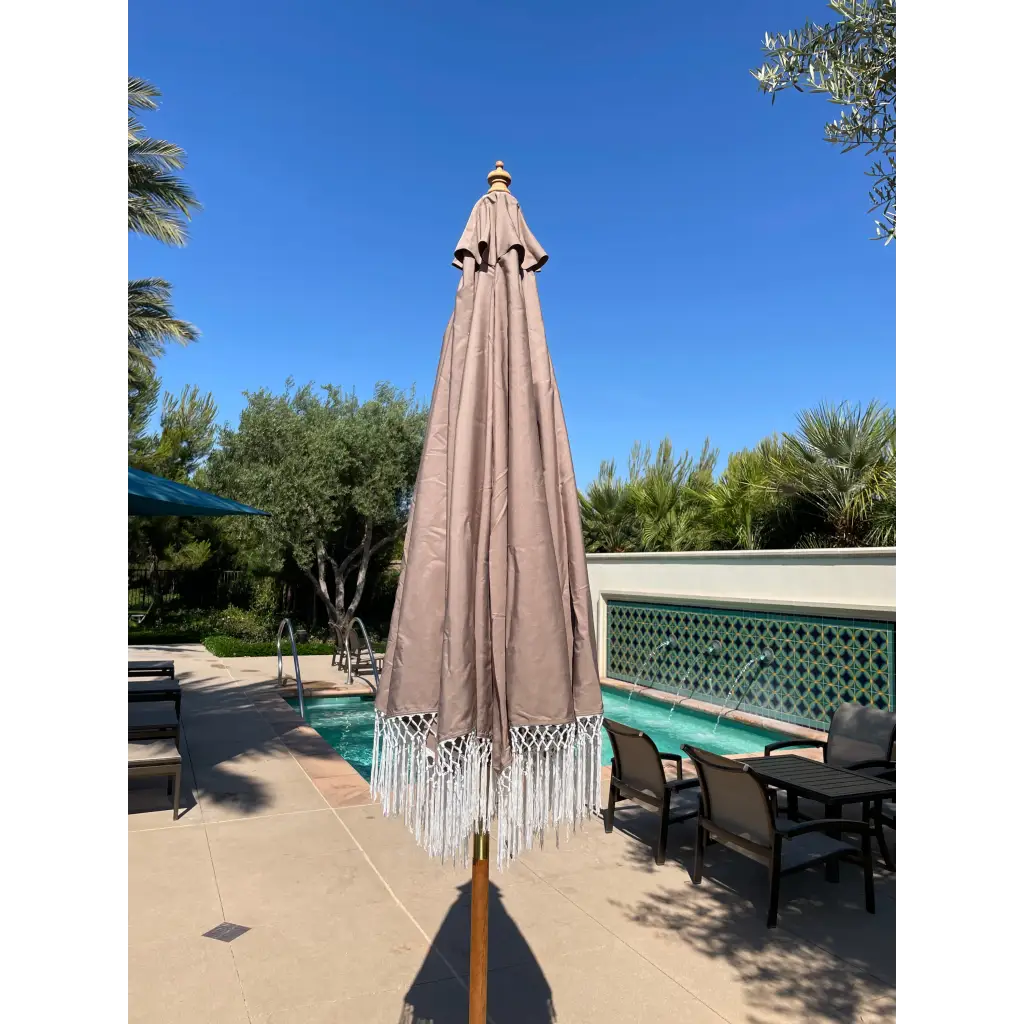 9ft 8 Ribs Replacement Umbrella Canopy w/ Tassels in Taupe (Canopy Only)