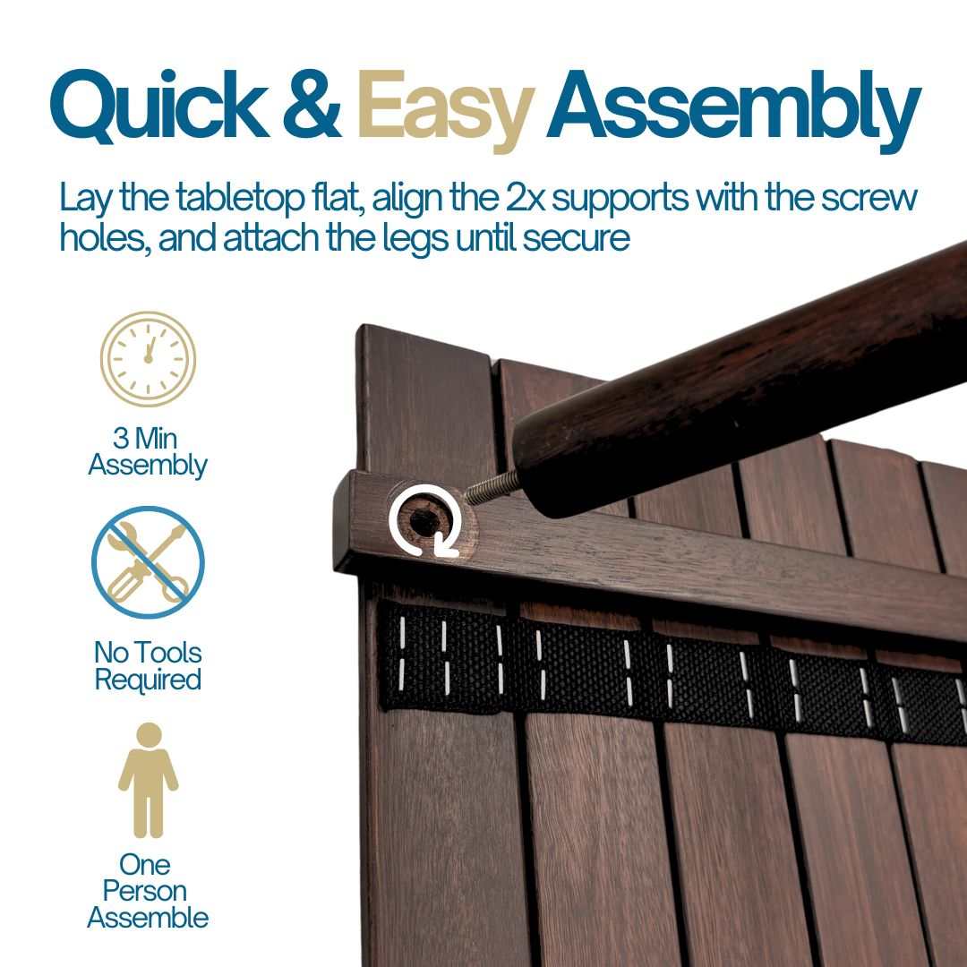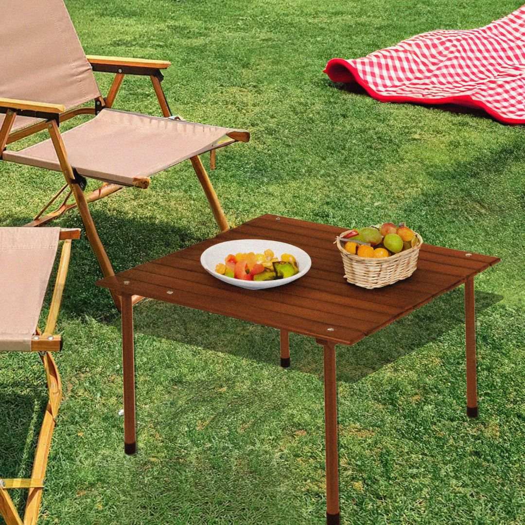 Outdoor Portable Wood Roll Up Table in Espresso 26"L x 26"W x 16"H