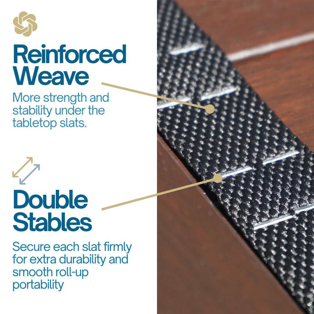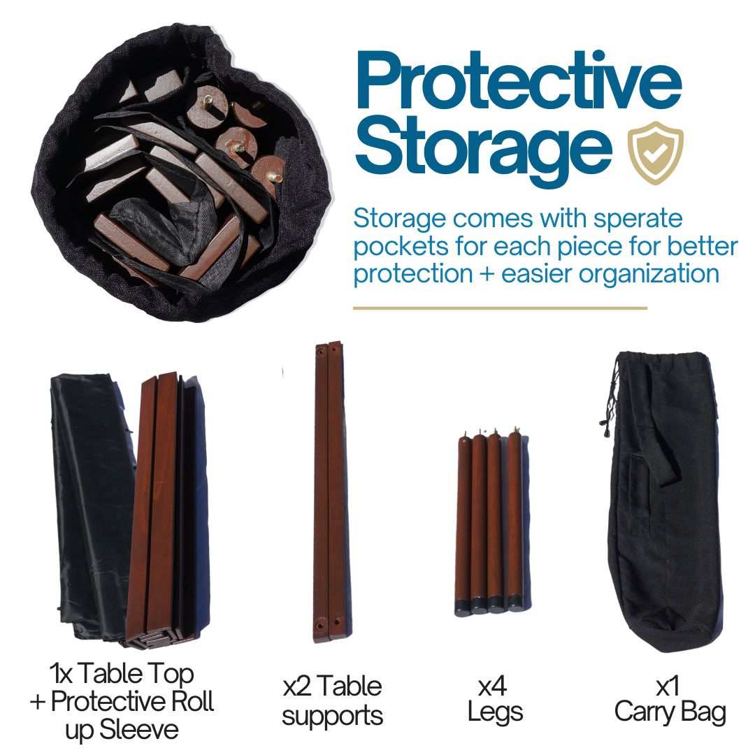 • PORTABLE & SPACE SAVING: Our roll-up table is lightweight yet sturdy. The sleek black carrying case is easy to throw over your shoulder and transport.