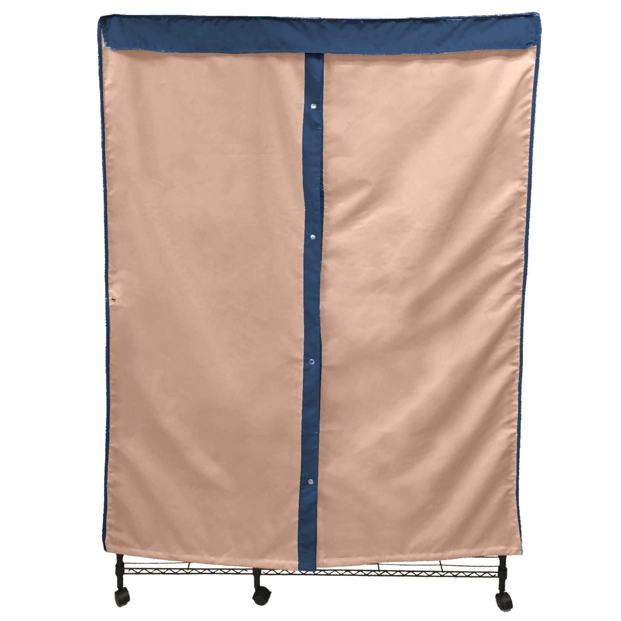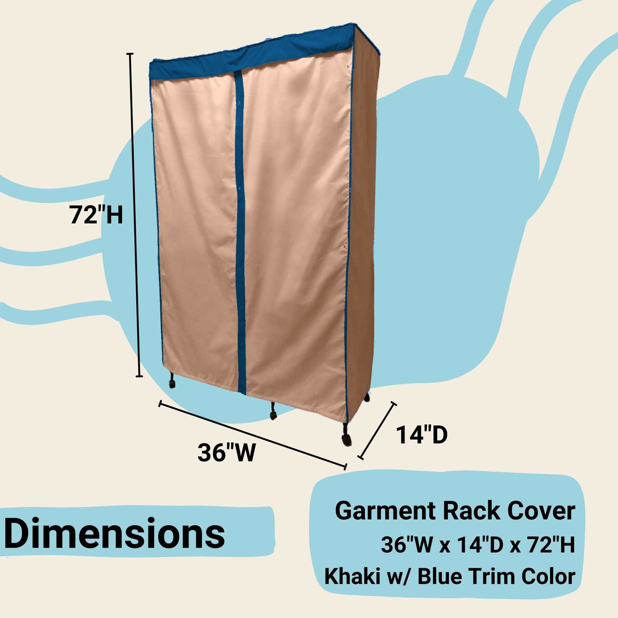 Portable Garment Rack Cover 36"W x 14"D x 72"H Beige Khaki with Dusty Blue Trim