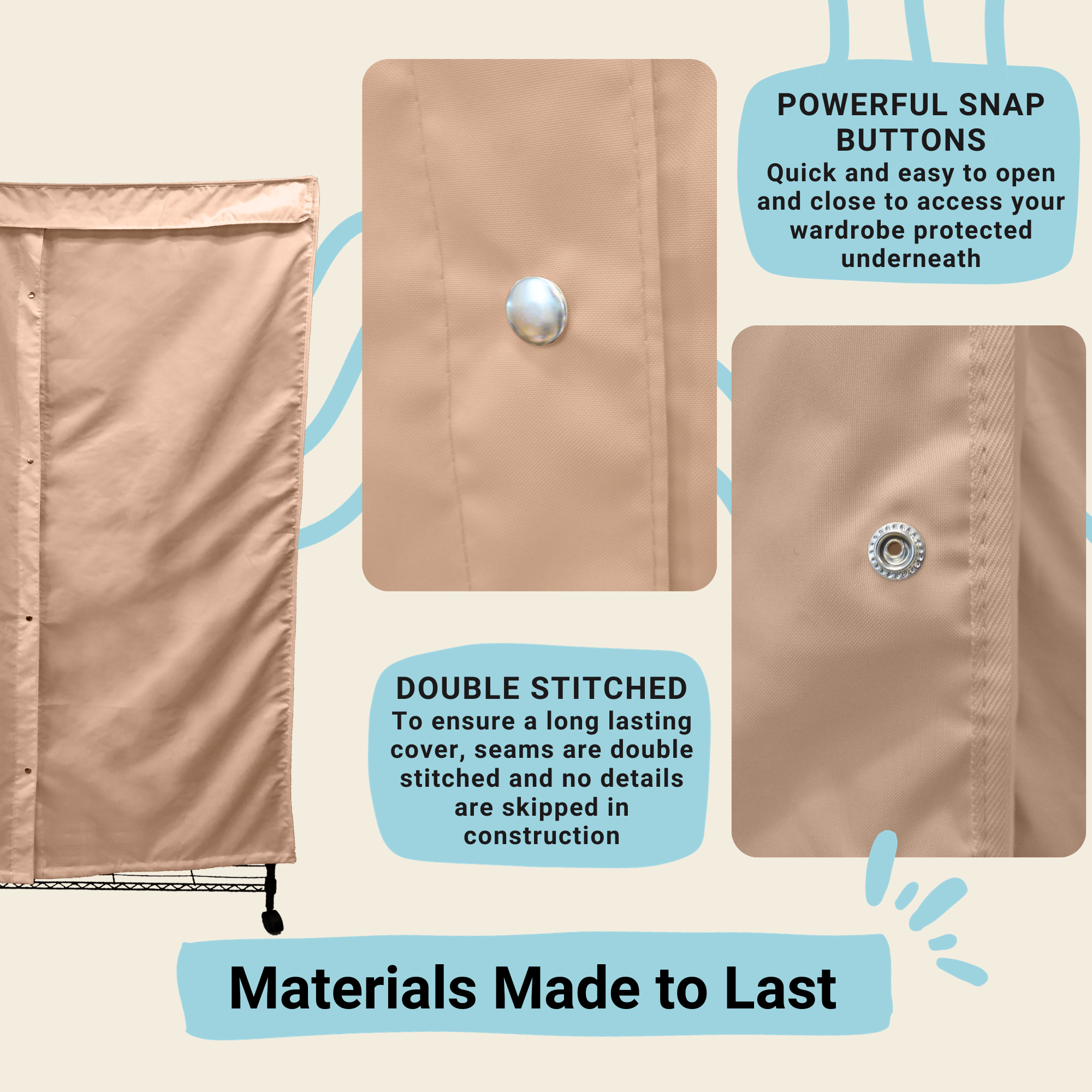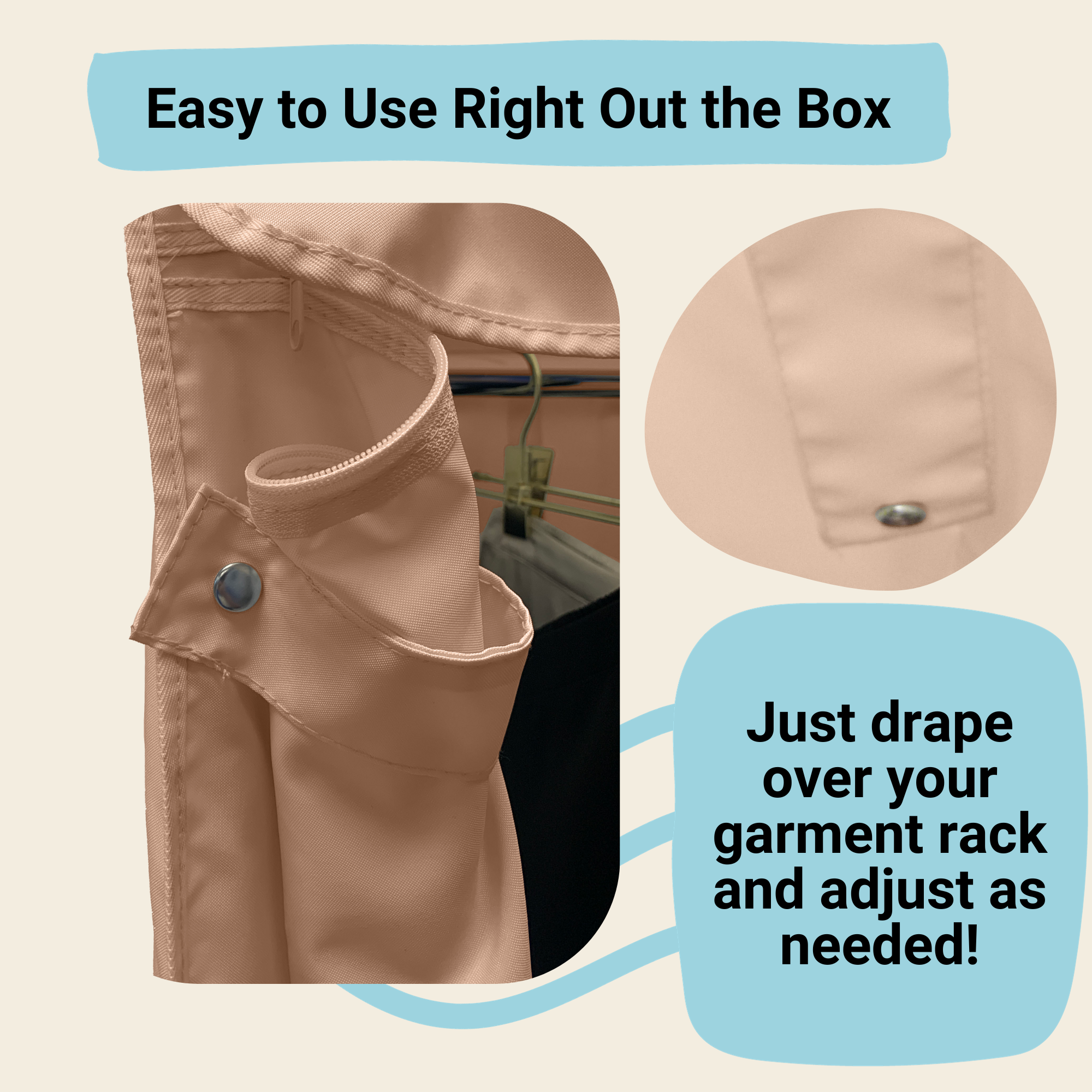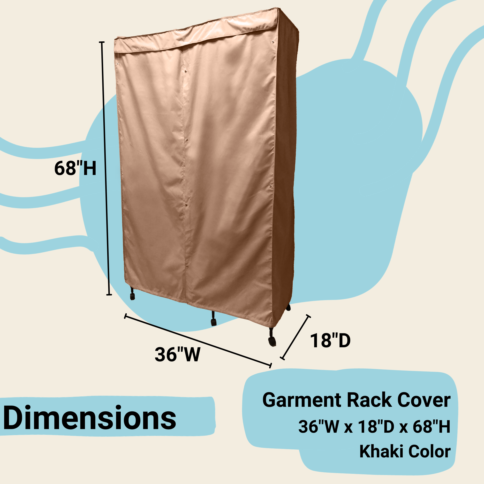 Portable Garment Rack Cover 36"W x 18"D x 68"H Beige Khaki