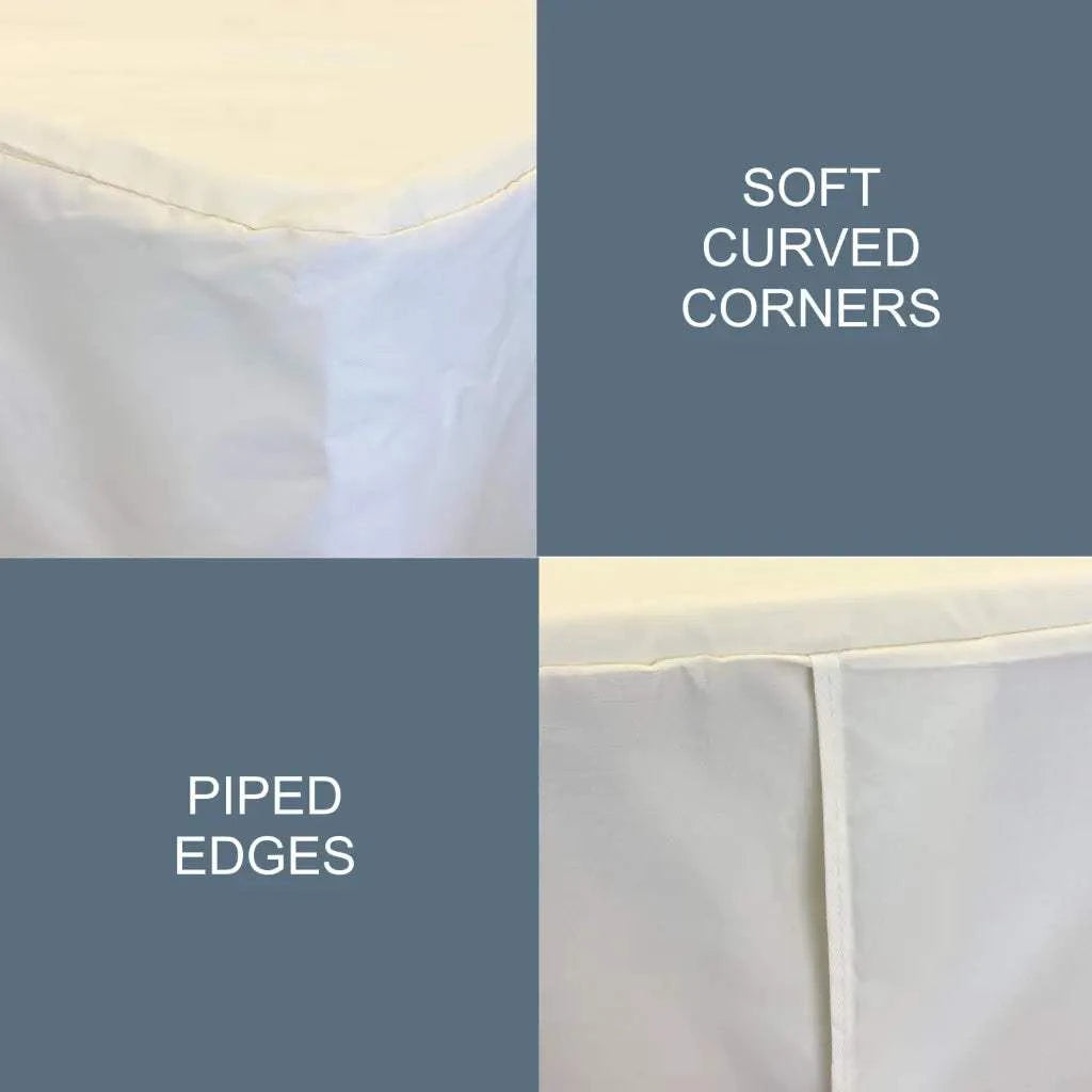 • ELEGANT DESIGN: Transform your table into an upscale presentation with this classic, seamless off-white tablecloth. Soft curved corners and piped edges create a polished look, making it the perfect staple for high-class celebrations such as weddings, banquets, quinceaƒ±eras and wine tastings. Hosting your favorite holiday? Let this versatile, timeless table linen be your go-to item. Whether it¢€™s a birthday party, work event, dinner party, or catering, you'll be glad you have this on hand.