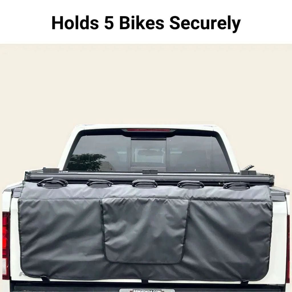 • Heavy Duty Tailgate Cover: Protect your truck and bikes with our black soft heavy duty 5 bike tailgate cover for trucks. It's a truck bike blanket, mat, and pad all in one.