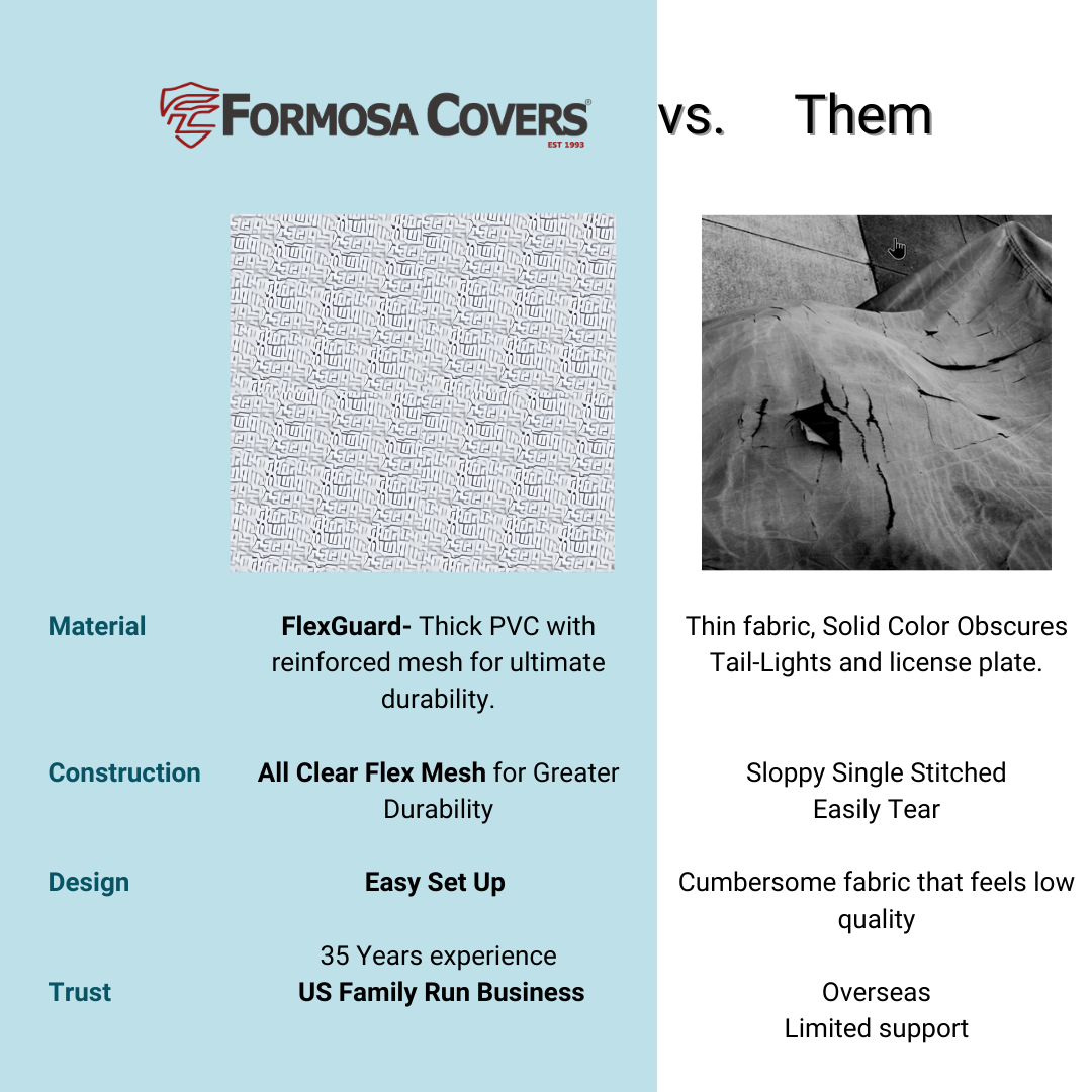 • NOTE:  Due to the large number of vehicle makes/models and state law variations, we cannot guarantee that the cover will not obstruct rear view vision. The cover works best on larger SUVs and RVs. It is the responsibility of the buyer to ensure you are following individual state laws. We recommend this accessory to be added in conjunction the cover to help provide extra visual indicators while on the road! https://amzn.to/3I4XrYx