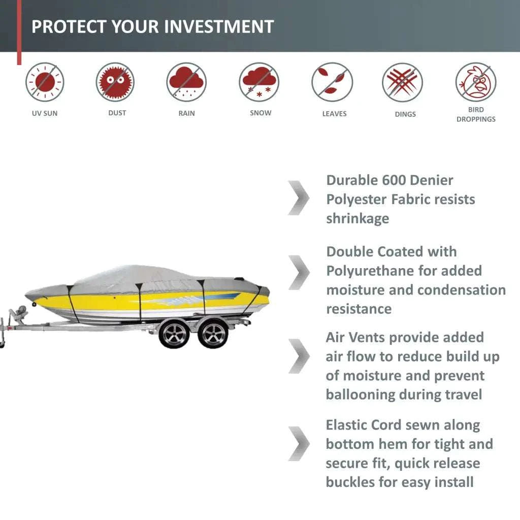 Premium 600 Denier Boat Cover Size C, fits 16ft to 18.5ft Boats
