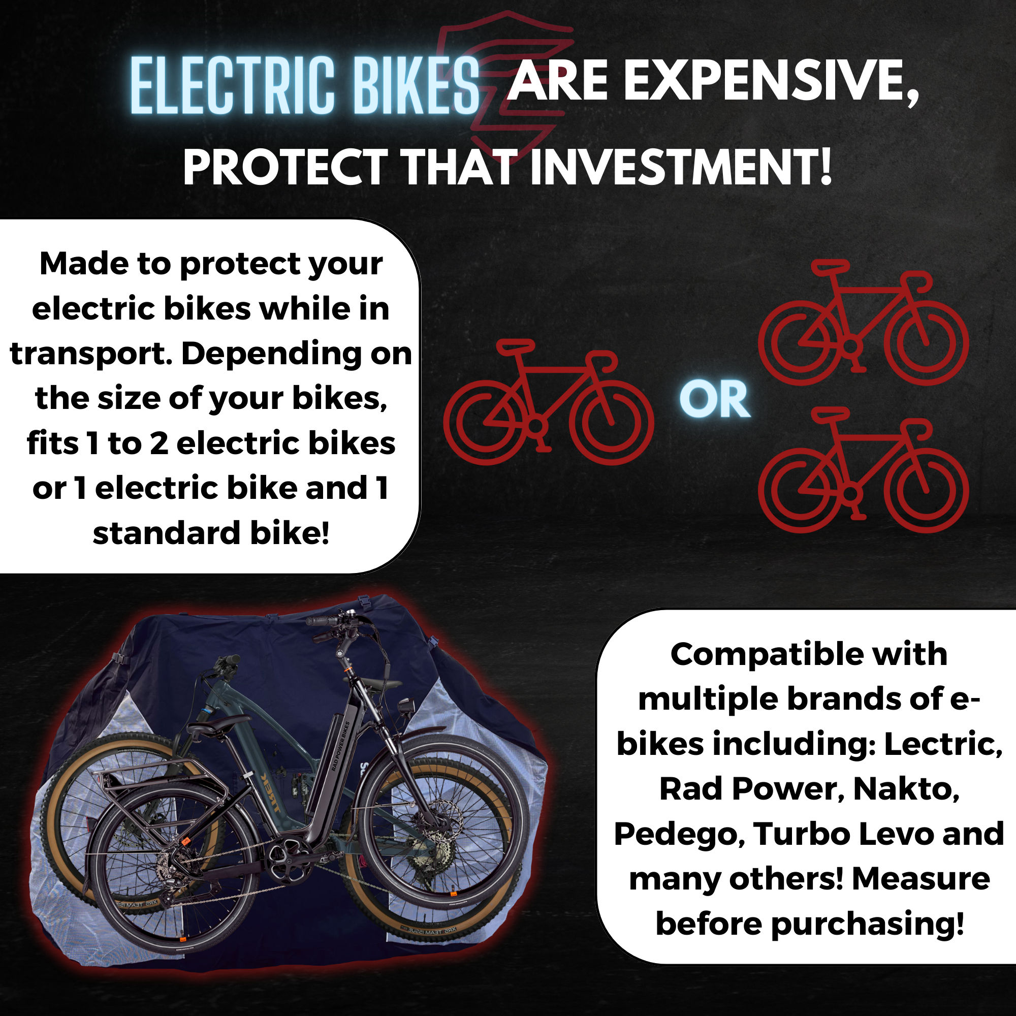 Electric Bike Cover for Transport (Fits 1-2 E-Bikes) with Large Translucent Ends