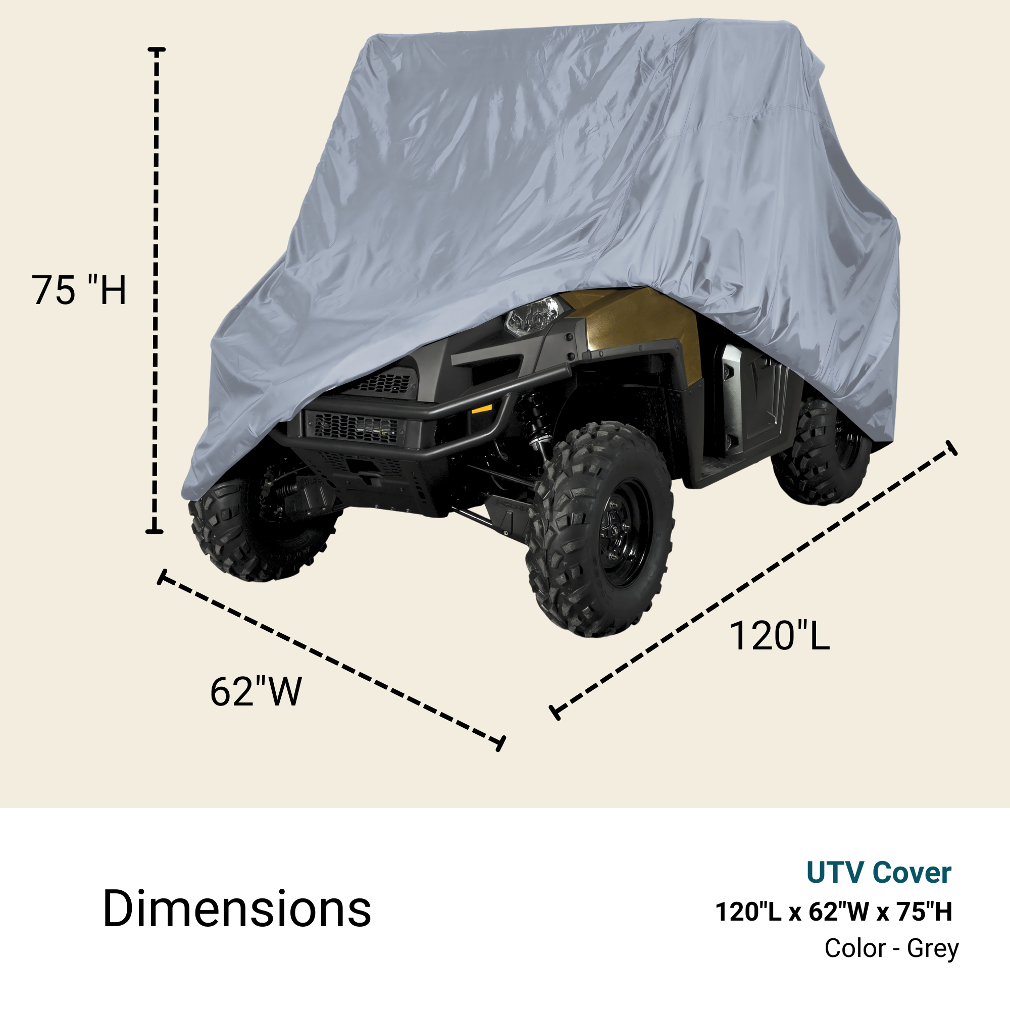 • This cover will fit most popular UTV's with roll cages like Yamaha Rhino, Wolverine, Polaris Ranger XP, TM, 4X4, RZR, General, Can-Am Maverick, Commander, Honda Pioneer, Kawasaki Mule 600/610, 3000/3010 and standard length John Deere Gator models and most any other model up to 118"" L.O.A.