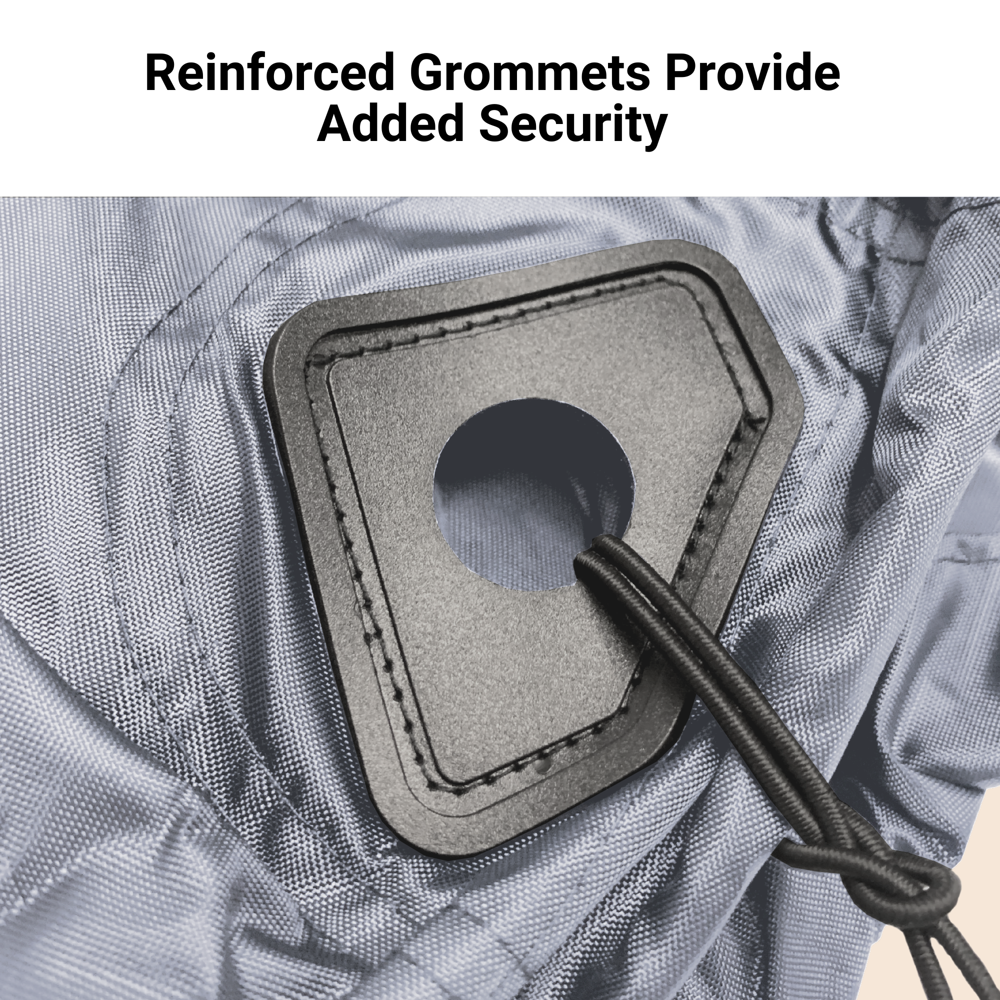 • All seams are top stitched with heavy duty nylon thread. 8 Heavy duty grommets allow cover to be locked to your quad for ensure security