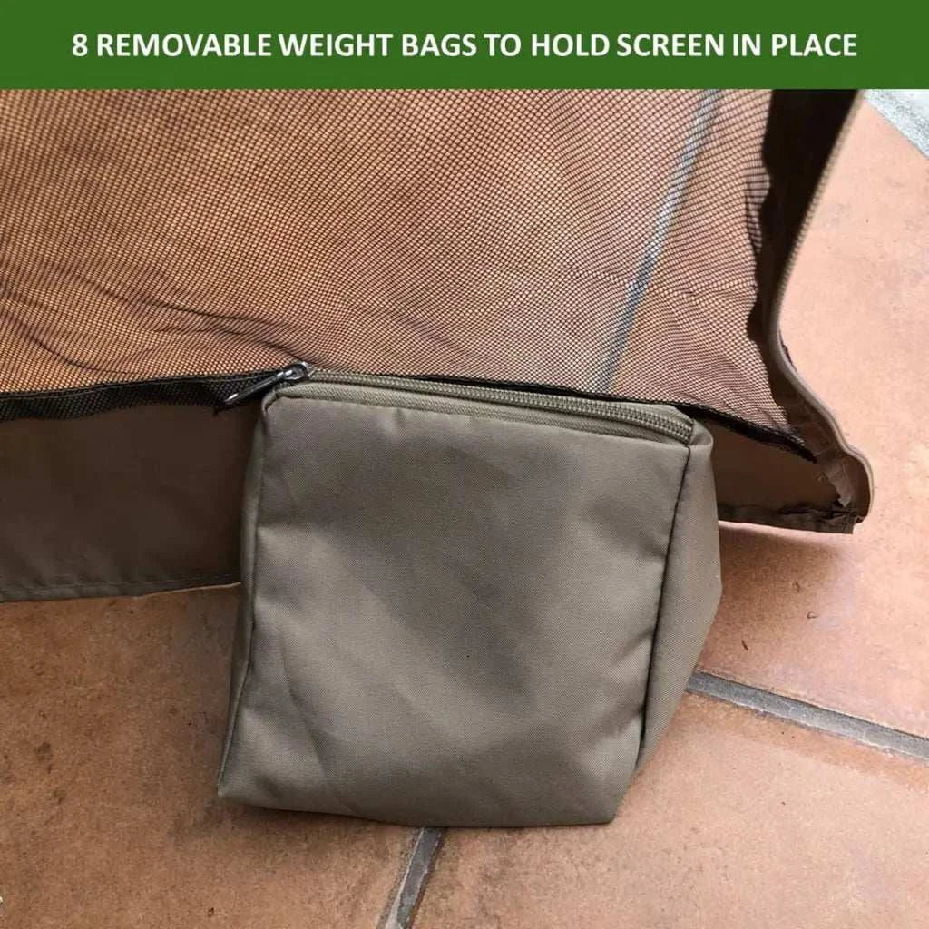 • Bottom includes 8 removable weight pouches that can be filled with sand/rocks to keep your cover secure