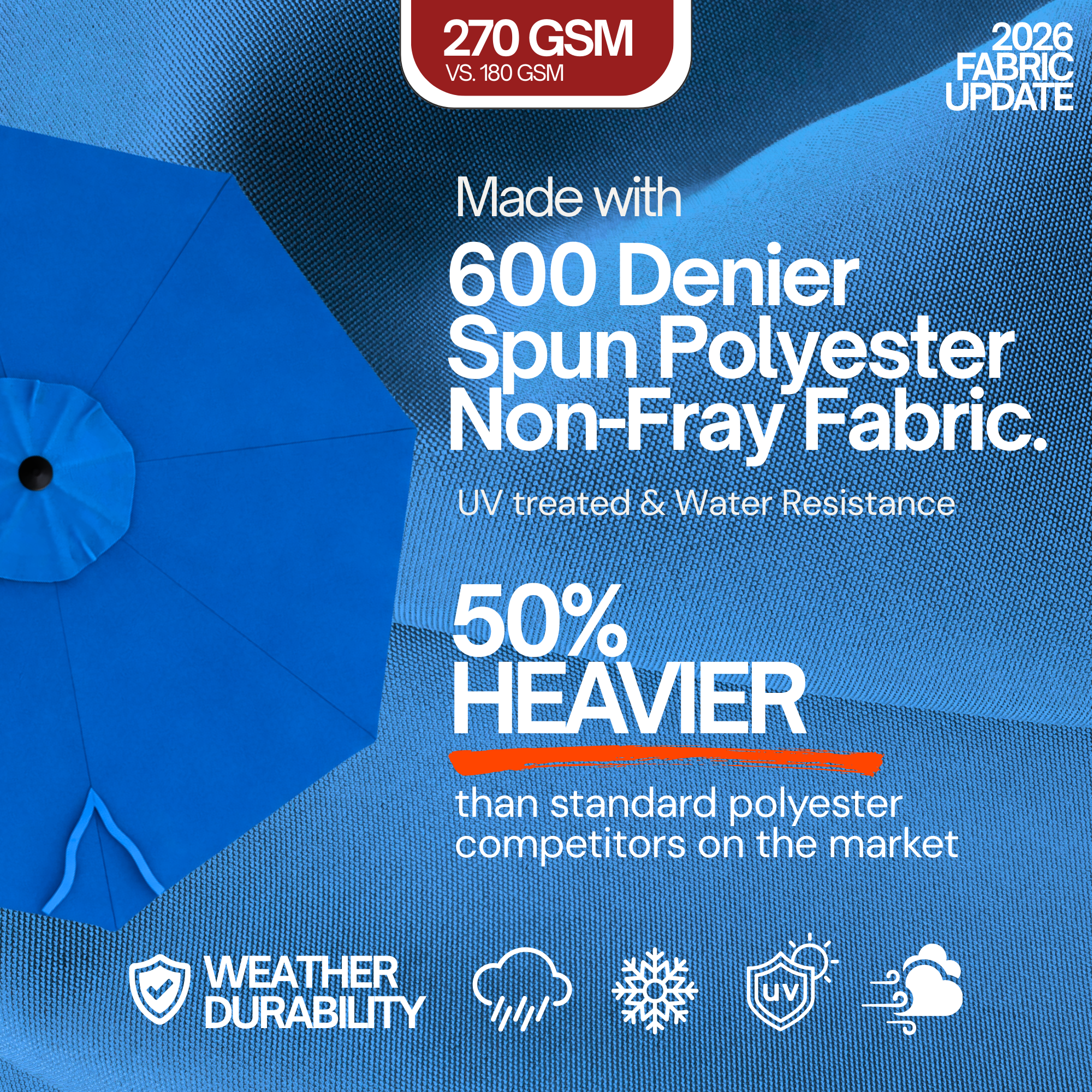 1. BUILT 50% HEAVIER THAN THE STANDARD | 600-denier polyester construction at 270 GSM, UV-treated and water-repellent, engineered to hold color and resist moisture through years of full outdoor exposure, not just one season.