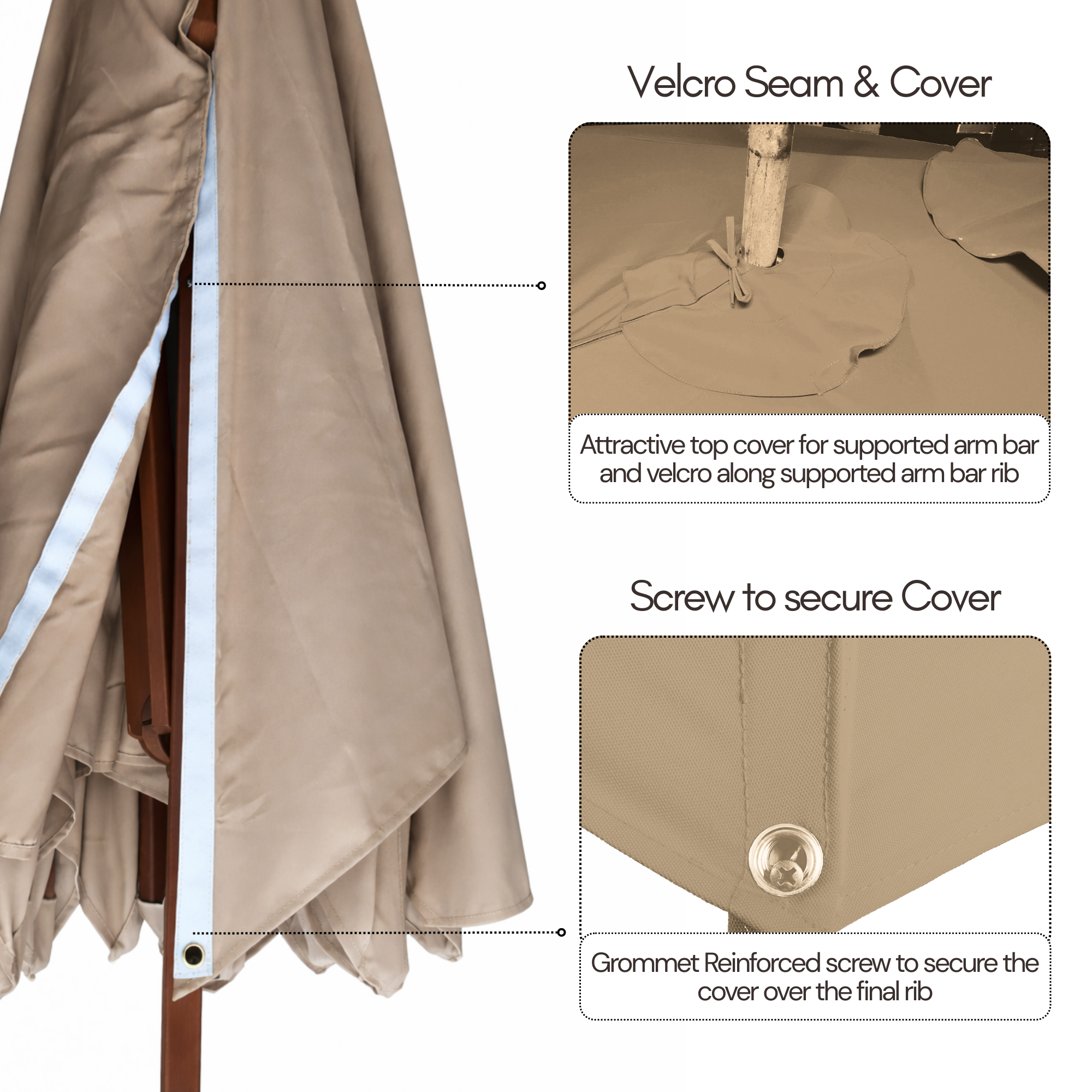 10ft Cantilever Supported Bar Umbrella 8 Rib Replacement Canopy Taupe
