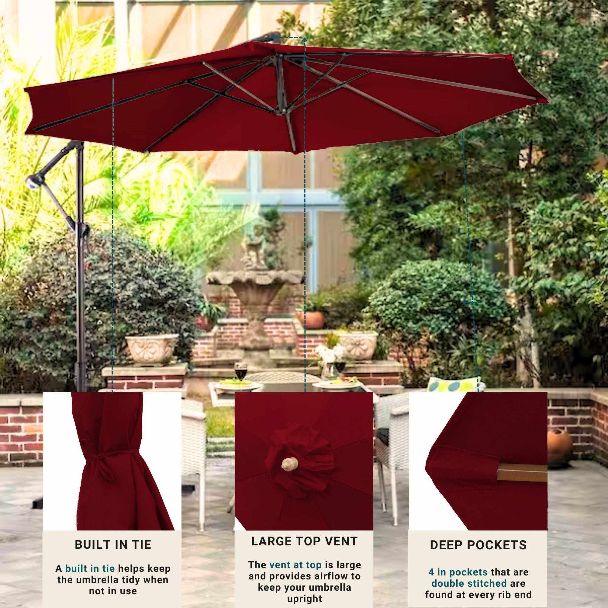 11ft Cantilever Hanging Umbrella 8 Rib Replacement Canopy Jockey Red