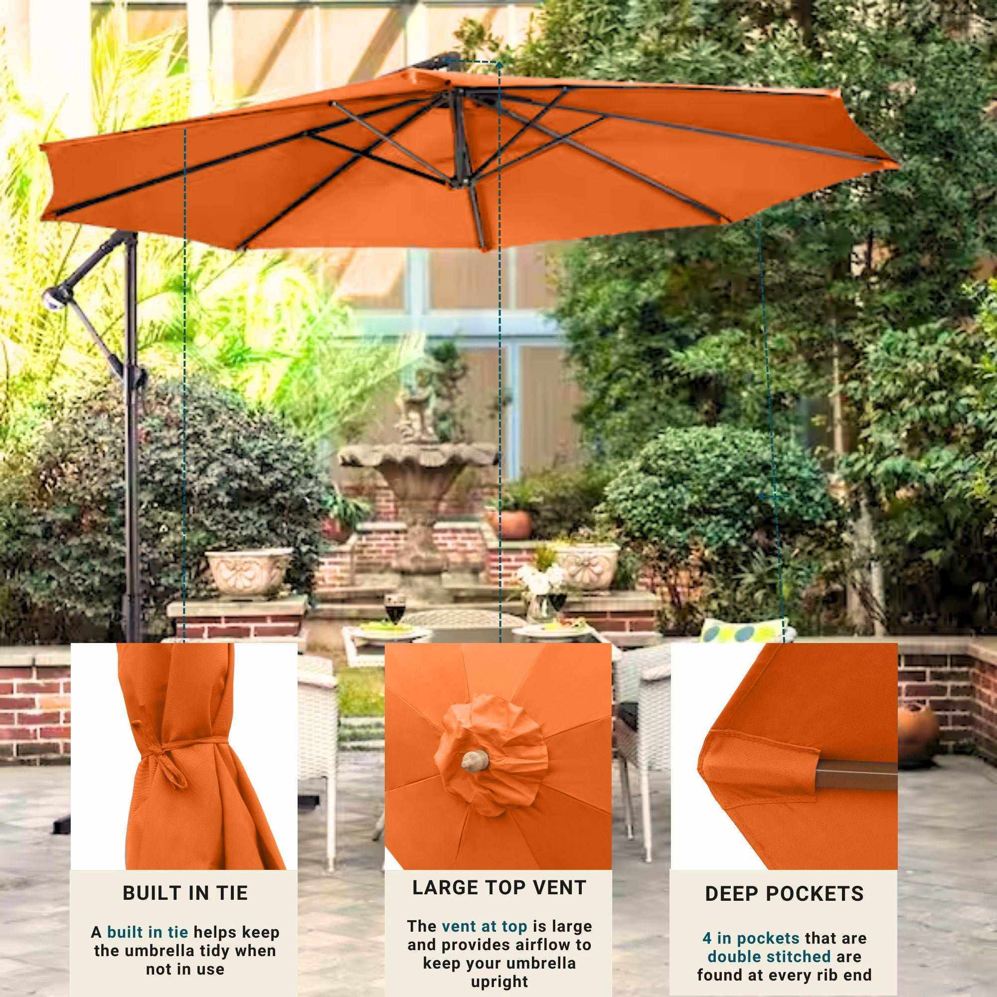 11ft Cantilever Hanging Umbrella 8 Rib Replacement Canopy Tuscan Orange