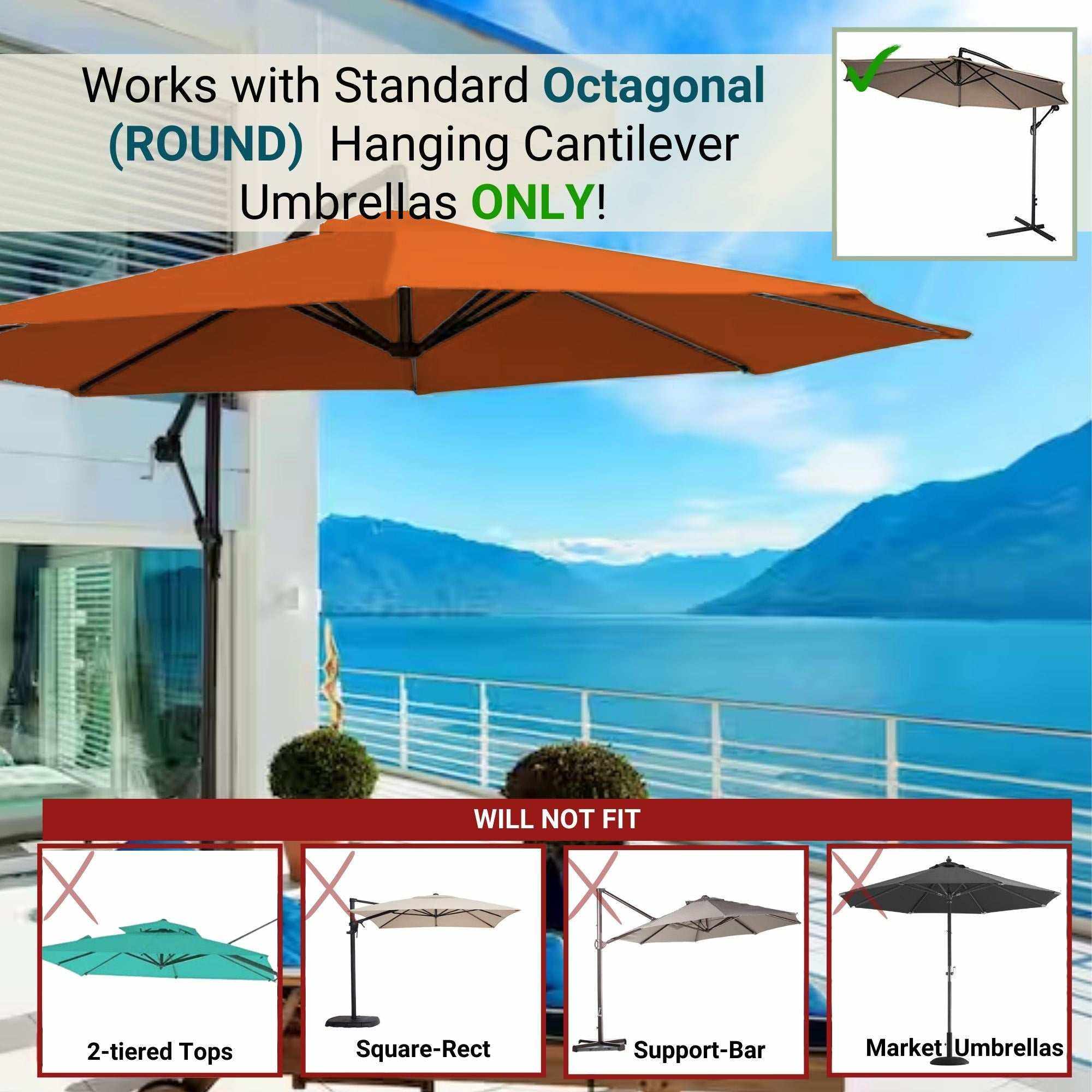 • Replacement Patio Umbrella Canopy made to fit off-set or cantilever umbrellas with hanging style canopy