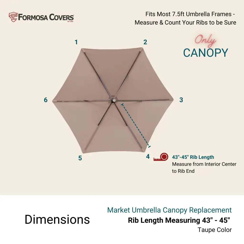 7.5 ft Market Patio Umbrella 6 Rib Replacement Canopy Taupe