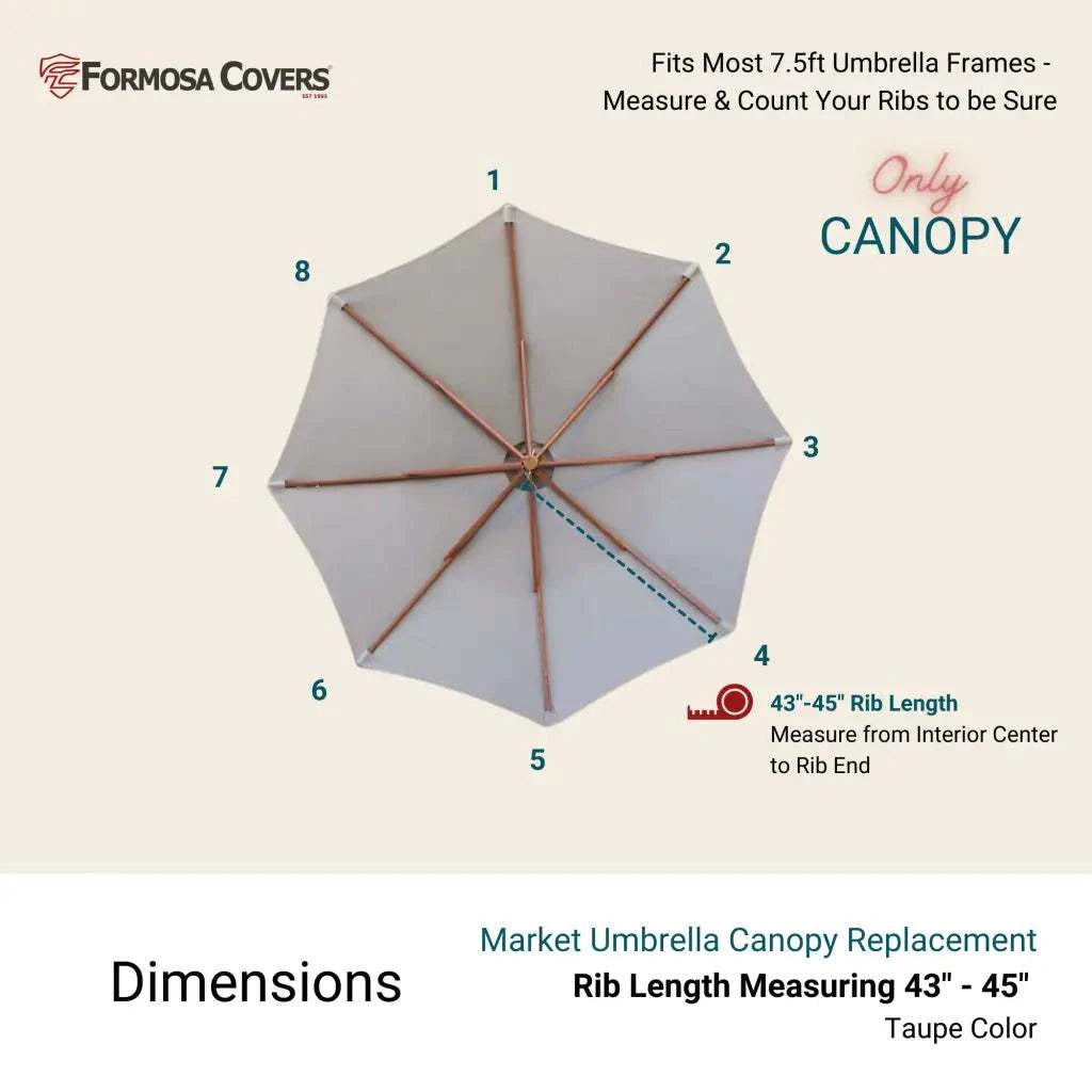 7.5 ft Market Patio Umbrella 8 Rib Replacement Canopy Taupe