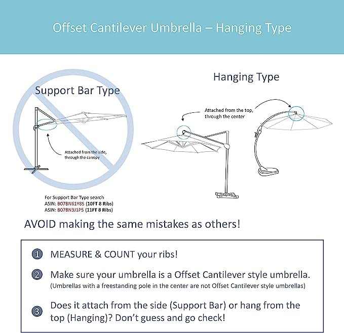 Size: 9ft 8 rib hanging cantilever canopy for rib length 52" - 54" (Hint: If you measure from the center pole please add 1.5" so 53.5" to 55.5")