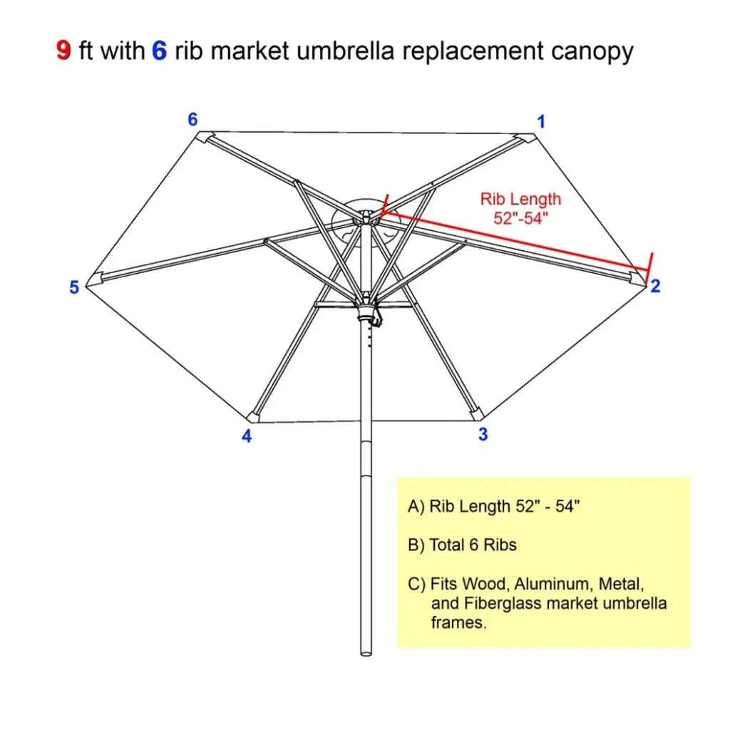 • Fits 9ft 6 rib umbrella frame with rib length 52"-54"